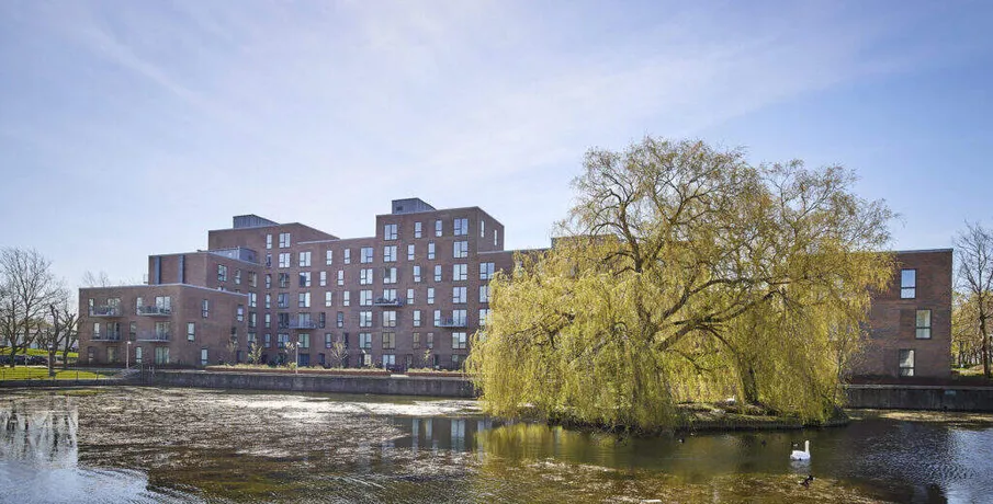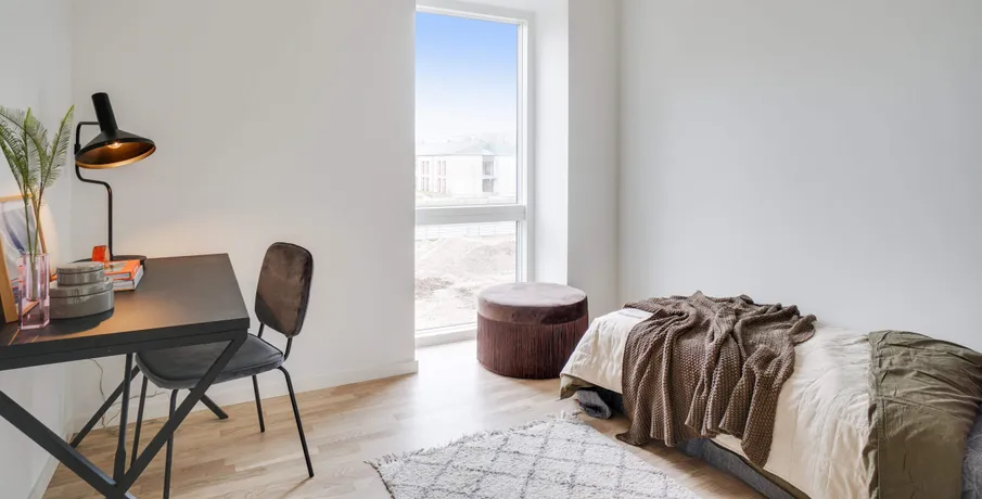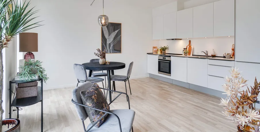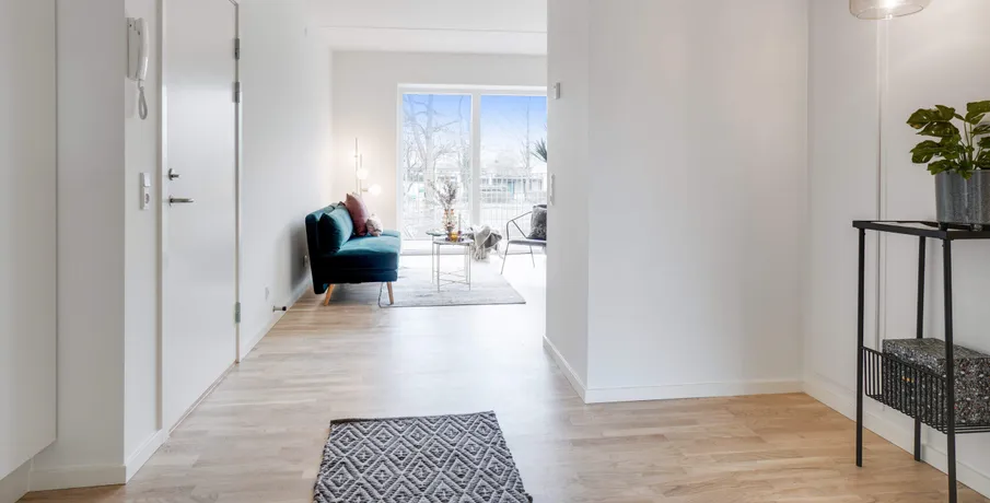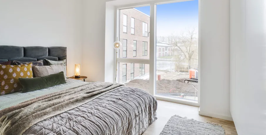 Om boligen. Skøn lys 4 værelses lejlighed beliggende i denne smukke karré sænket mod Rådhussøen, hvilket giver beboerne en enestående udsigt til søen og et fantastisk lysindfald fra eftermiddags- og aftensolen. I Rådhus Have får man en moderne lejelejlighed, som er lige til at flytte ind i og ejendommen består af 2-, 3- og 4-værelses lejligheder på 55-108 m2 med lyse egetræsgulve, flotte HTH køkkener, rummelige værelser og skønne store vinduespartier. Den fælles gårdhave består af et spændende og varierende, grønt udtryk, der skifter mellem bede, træer, legeområder og små opholdssteder, som indbyder til både leg og hygge.. Der er ydermere kun få min minutters gang til offentlig transport som tog og bus og trods sin ugenerte beliggenhed, ligger ejendommen også tæt på både gode indkøbsmuligheder, hyggelige caféer og restauranter samt smukke grønne områder.. Lejligheden indeholder: Åben entré med indbyggede skabe. Skøn lys stue med udgang til lejlighedens store altan samt åben forbindelse til lejlighedens spisekøkken med alle hårde hvidevarer og god skabsplads. Rummeligt badeværelse med bruseniche samt vaskemaskine og tørretumbler. Tre store lyse værelser – det ene med indbyggede skabe.. Til lejligheder er der privat opbevaringsrum i kælderen, og der er ydermere mulighed for leje af parkeringsplads ved ledige pladser foran ejendommen.. Vi gør opmærksom på, at der er brugt henvisningsbilleder fra lign. bolig i ejendommen.