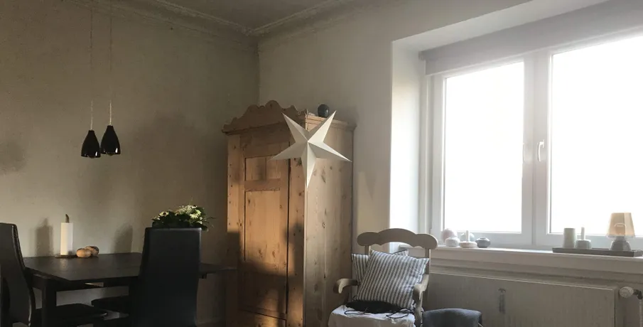 Renoveret 2 vær. lejlighed Pænt nyere køkken med køle/frys Badeværelse med brus Mindre soveværelse med adgang til altan Indretningsvenlig stue Stuklofter - trægulve - dørtlf. Fælles gård - vaskehus - cykelkælder.