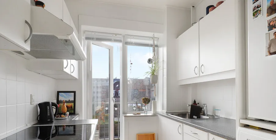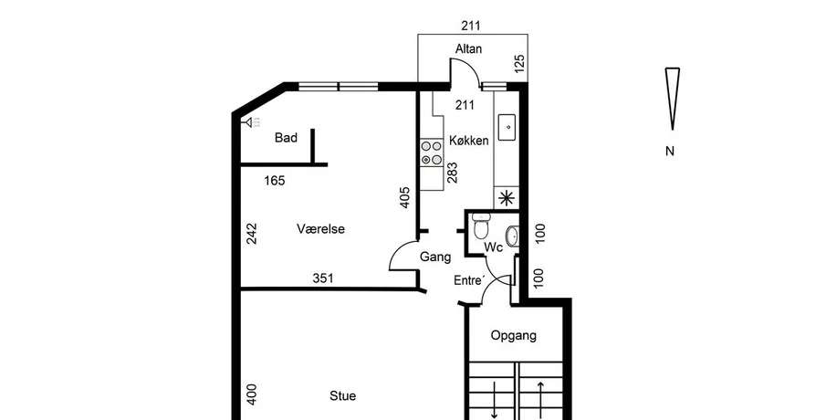 Fin lejlighed, tæt på indkøb, Vognsbølparken og byens kulturelle tilbud Fin fordeler gang, herfra adgang til toilet Indretningsvenlig stue Pænt køkken, med god skabsplads Der er adgang til altan fra køkkenet Soveværelse med brusrum lejligheden er nymalet ved indflyt Trægulve-cykelskur- dørtelefon- renoveret opgang