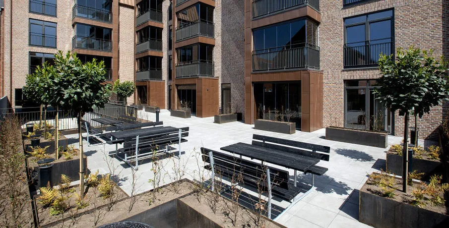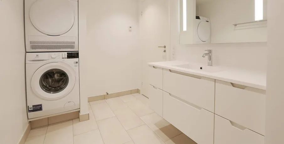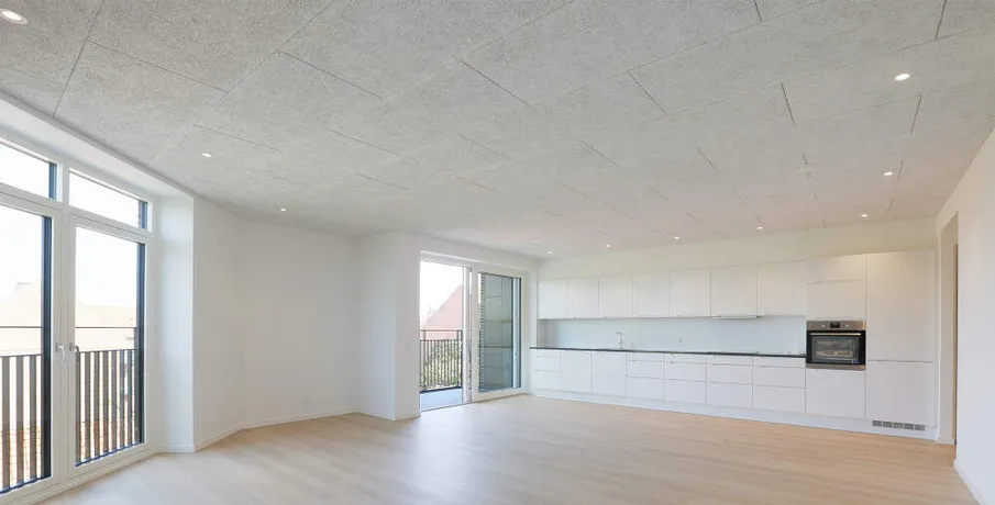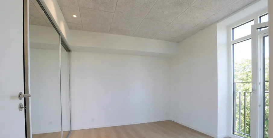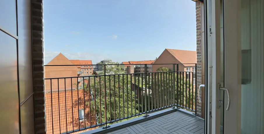 Denne rummelige og veldisponeret 2-værelses lejlighed er beliggende på 3. sal, med udsigt mod både nord og øst. Lejligheden indeholder en entré med indbyggede garderobeskabe, samt badeværelse med lyse klinker og gulvvarme, samt bruser, vaskeskab og vaskesøjle med nyeste energibesparende vaskemaskine og tørretumbler.. Herudover forefindes en stor kombineret spise- og opholdsstue, som ligger i åben forbindelse med lejlighedens køkken. Køkkenet er med hvide skabslåger og Quooker installation og indeholder alt i integrerede hårde hvidevarer, herunder bl.a. opvaskemaskine, køle- fryseskab samt induktionskogeplade og selvrensende pyrolyseovn. Alt sammen i nyeste energibesparende serier.. Der er fra lejligheden adgang til en østvendt altan på ca. 4 m2 med skydedøre samt en fransk altan med dobbeltdøre.. Herudover er lejligheden indrettet med ét soveværelser, med indbyggede skabsvægge med skydelåger.. I alle opholdsrum er der lagt gulvvarme under det slidstærke og lyddæmpende vinylplankegulv, ligesom der er monteret indbyggede LED-spots i lofter, gulv-til-loft vinduer, lyddæmpende lofter samt ventilationsanlæg i hele boligen.. Til lejligheden hører i øvrigt et ekstra opbevaringsrum i kælderen under ejendommen, hvor der også er mulighed for bil- og cykelparkering.. Lejlighedens BBR-areal udgør: 97 m2.. Netto boligareal udgør: 85 m2.