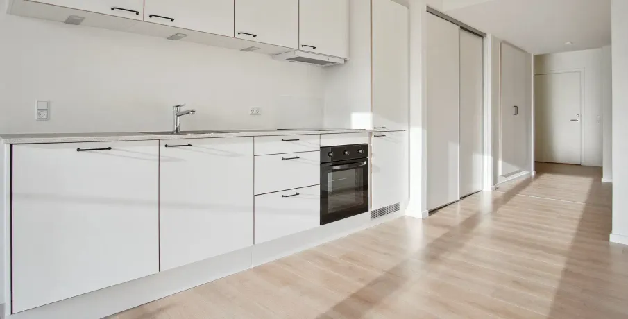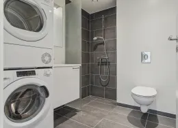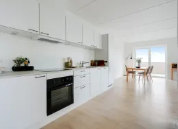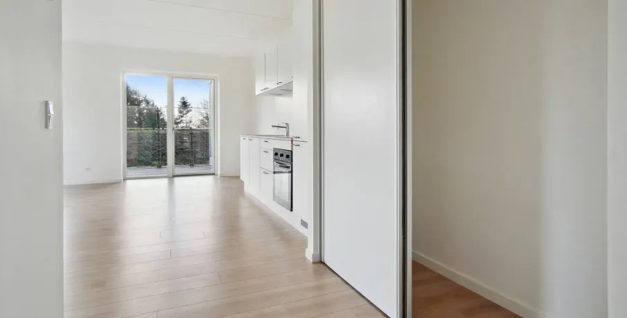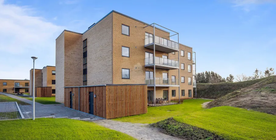 . Lejlighederne findes i fire forskellige planløsninger. Du får enten ét eller to separate værelser samt et rummeligt køkken-alrum, som er i åben forbindelse med stuen. Badeværelset er indrettet med en vaskesøjle og en separat bruseniche.. Alle lejlighederne har enten egen altan eller terrasse, og flere har udkig til Gudsø Vig og Kolding fjord. Der er tilmed skur til boligerne.. Hårde hvidevarer. Der alt i hårde hvidevarer i boligerne inklusive opvaskemaskine, tørretumbler og vaskemaskine.. Husdyr. Lejere kan ansøge om tilladelse til at holde indekat og hund på adressen. Udekatte er ikke tilladt.. Se vores samlede husdyrsregler. her. .. Parkering. Der er gratis fælles parkeringspladser i terræn samt seks fælles elladestandere fra Clever.. Elevator. Der er elevator i alle opgange på nær opgang 11, 13, 21 og 22, som har trappelift.. Læs mere om boligen. De viste billeder kan være fra et andet men tilsvarende lejemål i samme ejendom. Mindre afvigelser kan derfor forekomme..