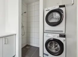 . Lejlighederne findes i fire forskellige planløsninger. Du får enten ét eller to separate værelser samt et rummeligt køkken-alrum, som er i åben forbindelse med stuen. Badeværelset er indrettet med en vaskesøjle og en separat bruseniche.. Alle lejlighederne har enten egen altan eller terrasse, og flere har udkig til Gudsø Vig og Kolding fjord. Der er tilmed skur til boligerne.. Hårde hvidevarer. Der alt i hårde hvidevarer i boligerne inklusive opvaskemaskine, tørretumbler og vaskemaskine.. Husdyr. Lejere kan ansøge om tilladelse til at holde indekat og hund på adressen. Udekatte er ikke tilladt.. Se vores samlede husdyrsregler. her. .. Parkering. Der er gratis fælles parkeringspladser i terræn samt seks fælles elladestandere fra Clever.. Elevator. Der er elevator i alle opgange på nær opgang 11, 13, 21 og 22, som har trappelift.. Læs mere om boligen. De viste billeder kan være fra et andet men tilsvarende lejemål i samme ejendom. Mindre afvigelser kan derfor forekomme..