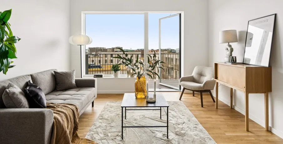 2-værelses lejlighed i Hylden i Hedehusene. Velkommen til Hylden i Hedehusene, lyse og moderne lejligheder i et roligt område tæt på både natur og by.. De 2-værelses lejligheder har moderne køkken med hårde hvidevarer og vaskemaskine. Planløsningen er gennemtænkt og giver en funktionel bolig med plads til både ophold og afslapning.. Ejendommen. Hylden er opført i gode materialer og har elevator, cykelparkering og grønne fællesområder, som skaber et trygt og behageligt miljø for beboerne.. Området. Beliggenheden i Hedehusene giver kort afstand til stationen, hvor lyntoget kører til København på cirka 19 minutter. Der er gode indkøbsmuligheder, grønne områder og skoler i nærheden, herunder Læringshuset i Hedehusene, som tilbyder moderne rammer for undervisning.. Et lyst og moderne hjem med alt, hvad du har brug for tæt på.. Billederne i denne annonce kan være fra lignende enheder og er kun til illustration. De repræsenterer stilen og kvaliteten af de tilgængelige enheder og kan variere i opbygning og detaljer.. Møblerne vist på billederne medfølger ikke. De skal give et indtryk af, hvordan rummet kan indrettes, men er ikke inkluderet i lejemålet..