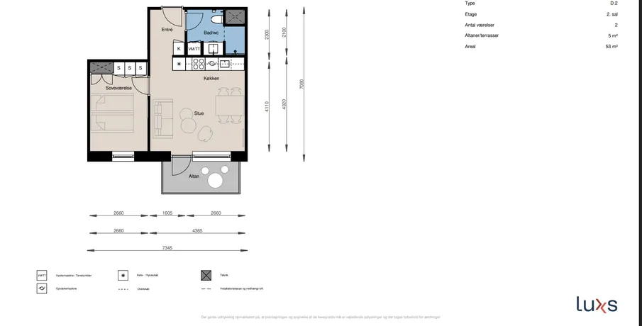 2 værelses lejlighed på 53 m2