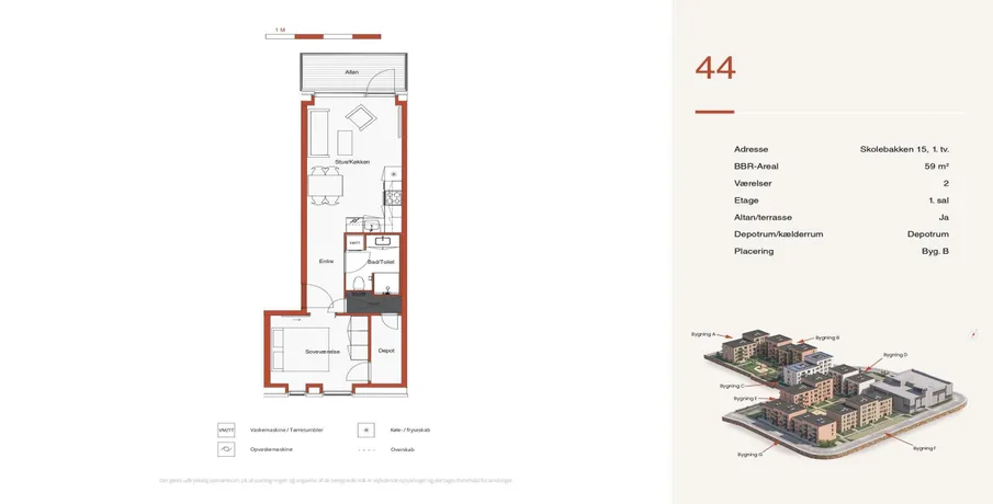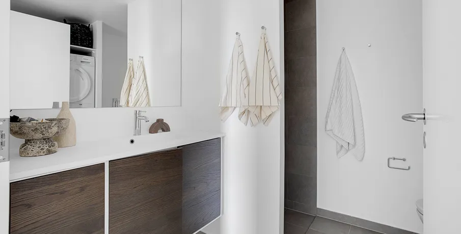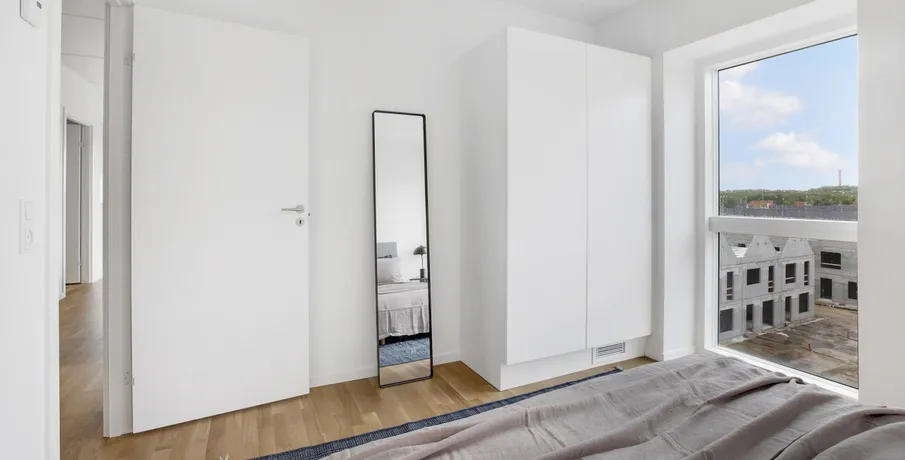 2-værelses lejlighed i Teglbakken i Hedehusene. Velkommen til Teglbakken i Hedehusene, lyse og moderne lejligheder i et roligt område tæt på stationen og byens hverdagstilbud.. De 2-værelses lejligheder har moderne køkken med hårde hvidevarer og vaskemaskine. Planløsningen er gennemtænkt og skaber en funktionel bolig med plads til både ophold og afslapning.. Ejendommen. Teglbakken er opført i gode materialer og har elevator, cykelparkering og grønne fællesområder, som skaber et trygt og behageligt miljø for beboerne.. Området. Ejendommen ligger i Hedehusene, tæt på stationen, hvor lyntoget kører til København på cirka 19 minutter. Der er gode indkøbsmuligheder, grønne parker og skoler i nærheden, herunder Læringshuset, som tilbyder moderne undervisningsrammer.. Et lyst og funktionelt hjem med alt lige i nærheden.. Billederne i denne annonce kan være fra lignende enheder og er kun til illustration. De repræsenterer stilen og kvaliteten af de tilgængelige enheder og kan variere i opbygning og detaljer.. Møblerne vist på billederne medfølger ikke. De skal give et indtryk af, hvordan rummet kan indrettes, men er ikke inkluderet i lejemålet..