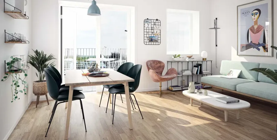 Lys 2-værelses lejlighed med udendørsareal i moderne ejendom – HillerødI et moderne og grønt boligprojekt i Hillerød udlejes nu en velindrettet 2-værelses lejlighed. Lejligheden er ideel til studerende, seniorer eller enlige, der ønsker en kombination af komfort, funktionalitet og adgang til udendørsareal.Om boligen Boligen byder på en praktisk planløsning og egen adgang til privat udendørsareal i form af terrasse eller altan, orienteret mod syd. Her får du:-Entré med slidstærkt klinkegulv -Køkken i forlængelse af gangarealet -Rummeligt soveværelse -Badeværelse med plads til vaskemaskine -Sydvendt stue med direkte udgang til altan eller terrasseLejligheden er lys og moderne med kvalitetsmaterialer og gode lysindfald. Der er gode parkeringsmuligheder ved ejendommen, og bygningen er opført med bæredygtige løsninger som sedumtage og solceller. Der er elevator i udvalgte opgange.Beliggenhed Lejligheden ligger centralt i Hillerød med kort afstand til:-Hillerød Station (1,3 km) -Indkøb (200 m) -Fitnesscenter (350 m) -Nyt supersygehus og Novo Nordisk (under 1 km) -Hillerød Centrum (1,2 km) Her bor du tæt på både natur og byliv, med nem adgang til transport og daglige fornødenheder.Det med småt -Husdyr: Kun efter godkendelse fra udlejer -RKI: Det er ikke tilladt at stå i RKI -Billeder: Visualiseringer og fotos er vejledende og kan afvige fra den konkrete bolig
