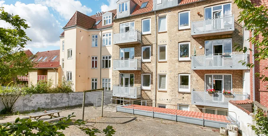 Dejlig lejlighed med moderniseret køkken, bad og nye vinduer med 3-lags lavenergiruder mm. - dørtelefon, østvendt altan. Lejligheden er beliggende i en ældre præsentabel ejendom, der løbende er moderniseret, i gammel kvarter med sjæl, 10 minutters afstand til gågade og indkøb. Trappevask, vask/tørretumbler og kold vand er inkluderet i huslejen. Husdyr tilladt under særlige vilkår, forhør nærmere på kontoret.