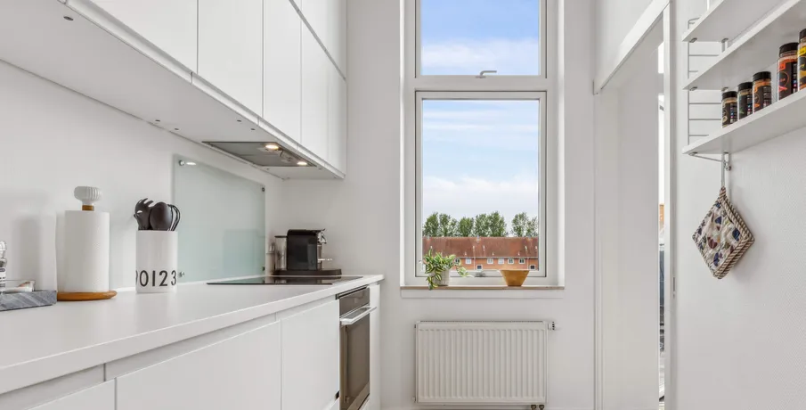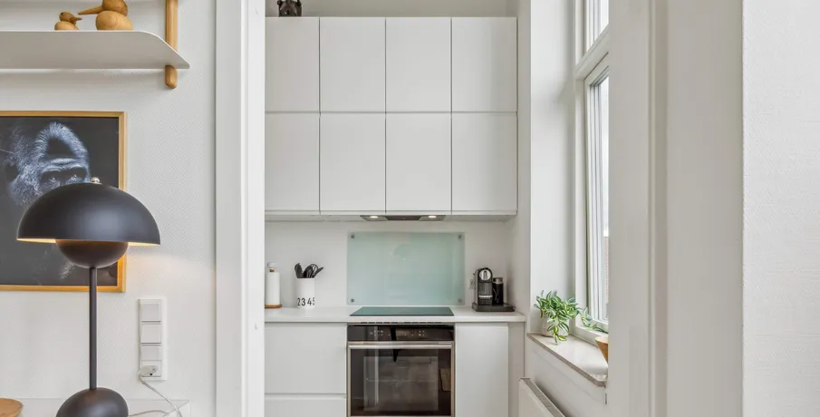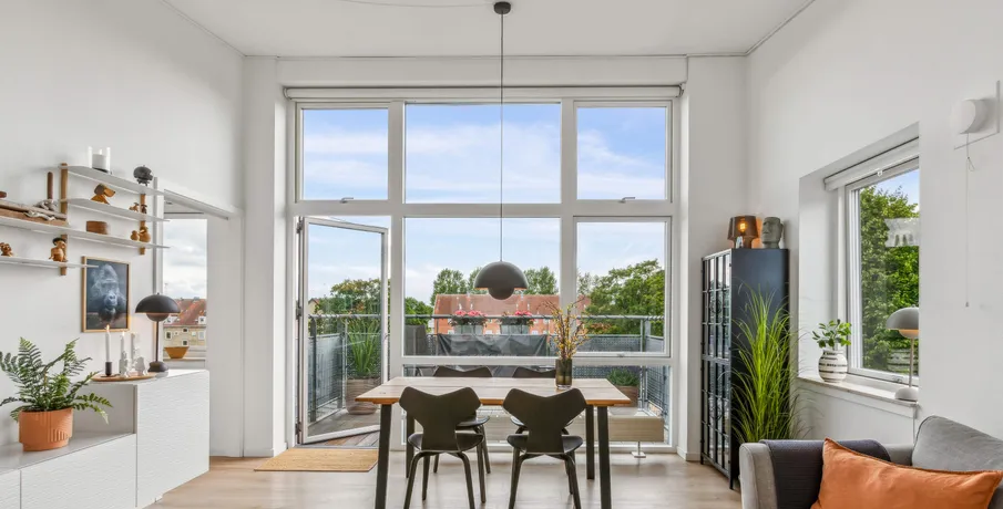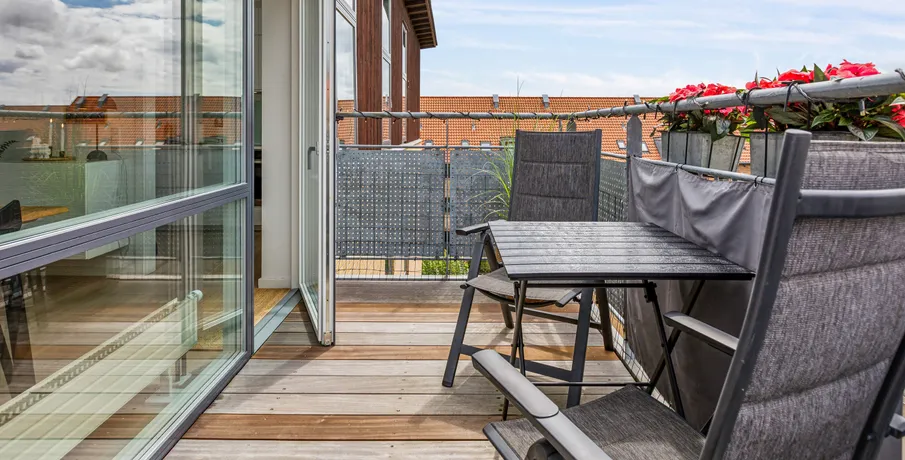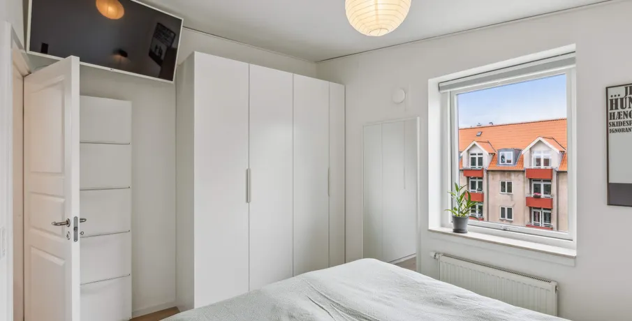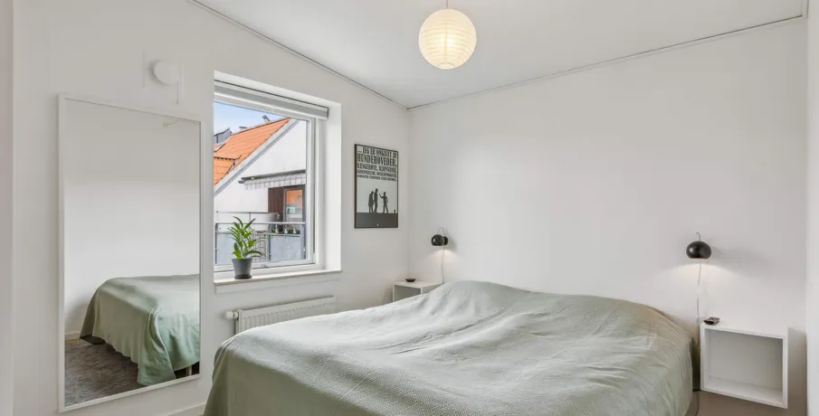Bedst egnet til enlige lejere eller par. . Lejligheden er attraktivt beliggende i en moderne ejendom med elevator, privat parkeringsplads, stort depotrum i kælder og en stor altan tilknyttet lejligheden. Lejligheden udlejes fuldt møbleret for en periode på op til 17 måneder. . Man ankommer med elevator til øverste sal i ejendommen, hvor der er adgang til lejlighedens entre. Her er indbyggede skabe og god plads - og videre adgang til lejlighedens stuerum. Stuerummet er indrettet som både spise- og opholdsstue og har en fantastisk udsigt over nærområdet af store vinduespartier fra gulv til loft mod syd/vest. Her er også direkte udgang til en god og rummelig altan. Lejlighedens køkken er beliggende i delvist åben forbindelse med stuerummet og fremstår i flot og moderne stand, udstyret med alle nødvendige hårde hvidevarer. . Lejlighedens soveværelse er i en god og rummelig størrelse og indrettet med en dobbeltseng og indbyggede skabe. Badeværelset er beliggende lige på den anden side af gangen og er ligeledes i fin og rummelig størrelse, udført med separat bruseniche og vaskefaciliteter. . Der er gode fællesområdet tilknyttet ejendommen, samt en privat parkeringsplads i terræn til lejligheden. Der er et stort privat depotrum i kælderen og mulighed for overdækket cykelparkering. . Lejligheden udlejes fuldt møbleret for en periode på op til 17 måneder. Udlejer ikke som delebolig. Bedst egnet til enlige lejere eller et par.