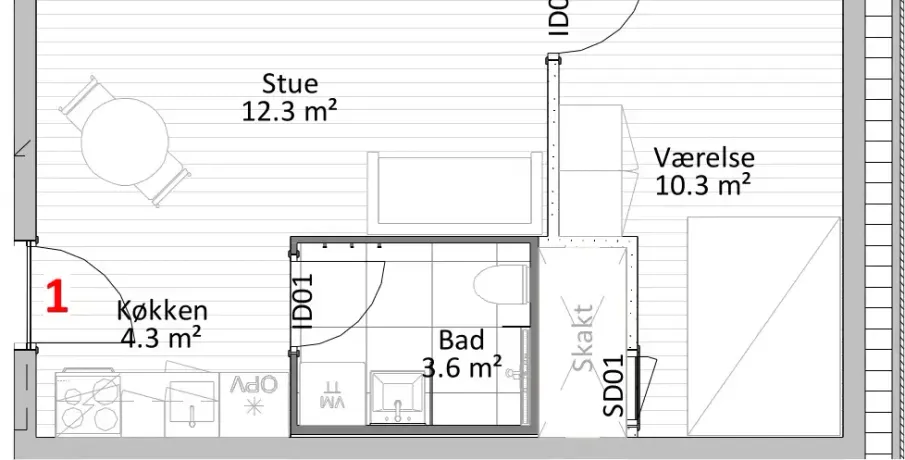1 værelse på 33 m2