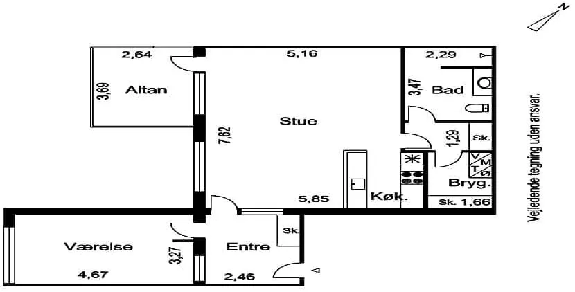 2 værelses lejlighed på 106 m2