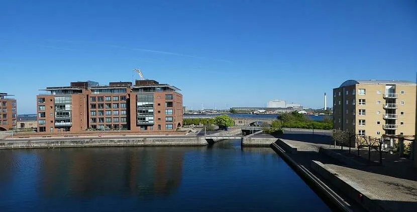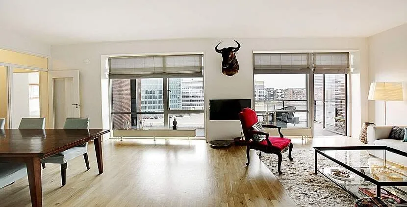 Uden bopælspligt - luksuslejlighed attraktivt beliggende ved havnebassinet i ejendom med elevator og privat P-plads.