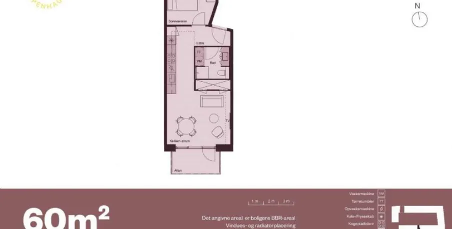 2 værelses lejlighed på 60 m2