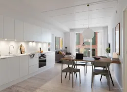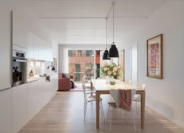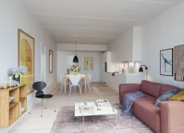 2-værelses lejlighed i Ressourcerækkerne. Boligen Velkommen til Ressourcerækkerne i Ørestad, et moderne og bæredygtigt boligområde, hvor kvalitet og komfort går hånd i hånd.. Den 2-værelses lejlighed er indrettet med et lyst og funktionelt køkken med alt i hårde hvidevarer, rummeligt opholdsrum og moderne badeværelse. Her får du et stilrent hjem med fokus på grøn livsstil og god planløsning.. Ejendommen. Ressourcerækkerne er opført i genbrugsmaterialer som mursten fra Carlsberg-bygninger og beton fra Metrobyggeriet. Ejendommen tilbyder grønne fællesarealer, hyggelige taghaver og et levende fællesskab.. Området. Beliggende centralt i Ørestad med kort afstand til metro, dagligvarebutikker og Amager Fælled. Et ideelt valg for dig, der ønsker en moderne bolig tæt på både natur og by.. Billederne i denne annonce kan være fra lignende enheder og er kun til illustration. De repræsenterer stilen og kvaliteten af de tilgængelige enheder og kan variere i opbygning og detaljer.. Møblerne vist på billederne medfølger ikke. De skal give et indtryk af, hvordan rummet kan indrettes, men er ikke inkluderet i lejemålet..