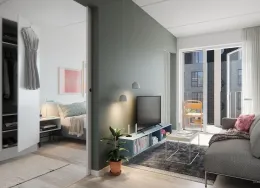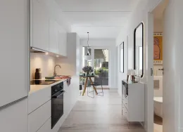 2-værelses lejlighed i Ressourcerækkerne. Boligen Velkommen til Ressourcerækkerne i Ørestad, et moderne og bæredygtigt boligområde, hvor kvalitet og komfort går hånd i hånd.. Den 2-værelses lejlighed er indrettet med et lyst og funktionelt køkken med alt i hårde hvidevarer, rummeligt opholdsrum og moderne badeværelse. Her får du et stilrent hjem med fokus på grøn livsstil og god planløsning.. Ejendommen. Ressourcerækkerne er opført i genbrugsmaterialer som mursten fra Carlsberg-bygninger og beton fra Metrobyggeriet. Ejendommen tilbyder grønne fællesarealer, hyggelige taghaver og et levende fællesskab.. Området. Beliggende centralt i Ørestad med kort afstand til metro, dagligvarebutikker og Amager Fælled. Et ideelt valg for dig, der ønsker en moderne bolig tæt på både natur og by.. Billederne i denne annonce kan være fra lignende enheder og er kun til illustration. De repræsenterer stilen og kvaliteten af de tilgængelige enheder og kan variere i opbygning og detaljer.. Møblerne vist på billederne medfølger ikke. De skal give et indtryk af, hvordan rummet kan indrettes, men er ikke inkluderet i lejemålet..
