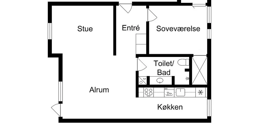 2 værelses lejlighed i København S