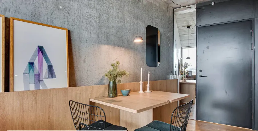 . Lejlighederne er designet med fleksibilitet in mente. Møblerne er designet med flere funktioner, hvilket gør det nemt at skifte fra stue til soveværelse eller arbejdsområde til spisestue. Det er smart living, men stadig fuld af muligheder. Alle lejlighederne har et nordisk designkøkken lavet i samarbejde med det kendte, danske køkkenfirma Reform. Interiøret er specialdesignet af arkitekten, og rummer innovative løsninger, der optimerer hverdagslivet..