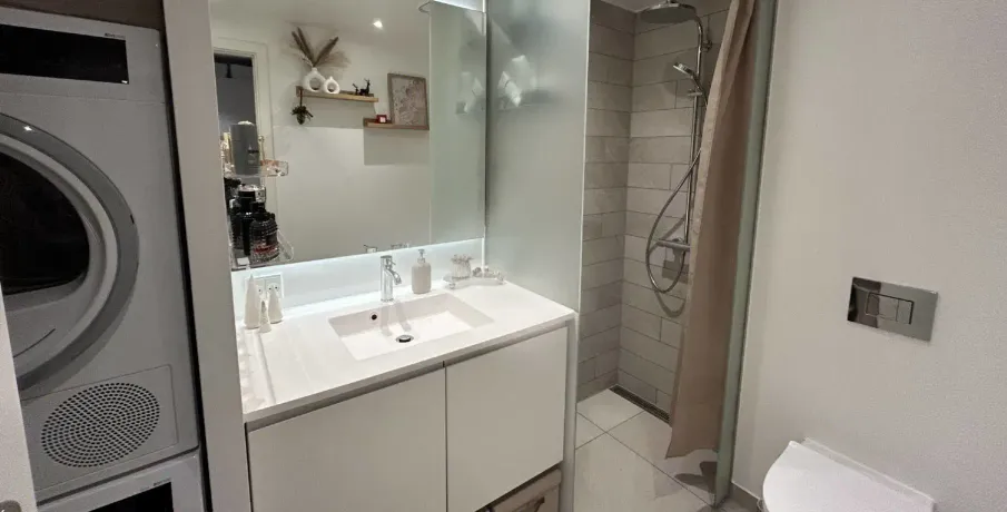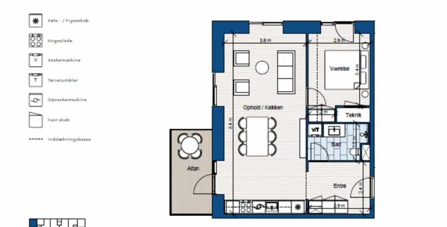 . · Stort køkken alrum. · Vestvendt terrasse. · Skøn beliggende tæt på StigsborgParken. · Fint depotrum medfølger. · Elevator i opgangen og alle hårde hvidevarer i boligen. Velkommen til Havnebryggen II i Nørresundby på solsiden af Limfjorden med udsigt ud over Aalborgs flotteste skyline med Musikkens Hus, Utzon Centret og musikhuskvartret lige på den anden side, ligger den helt nye grønne bydel Stigsborg.. Lige ved vandkanten findes Havnebryggen II De forskellige lejlighedstyper i forskellige størrelser sikrer en blandet beboergruppe i forskellige aldre og faser af livet.. Man får adgang til et hyggeligt hævede gårdmiljø i Havnebryggen II. Derudover kan man leje p-plads i det nærved liggende p-hus for 625 kr. pr. mdr.. Her, ved promenaden langs vandkanten, kan du leve et aktivt liv med masser af muligheder lige uden for døren. Her kan du sejle, stå på SUP, svømme i fjorden, løbe i den store park eller cykle over til Aalborgs pulserende centrum. Løbeture i nyanlagte, store Stigsparken, der er nabo til Havnebryggen II eller rolige gåture.. Du vælger selv. Her kan du få et aktivt liv eller finde en fredfyldt stund i de uovertrufne grønne og blå omgivelser. Stigsborg er det nyeste sted i en by i rivende udvikling. Den nye bydel åbner muligheden for at gå på opdagelse i alt det, Aalborg har at byde på: kultur og natur, aktivitet og ro, et trygt liv og fællesskab med andre. Stigsborg er en bydel, der åbner nye muligheder. Havnebryggen Stigsborg er det først sted i den nye bydel, hvor du kan bo lige ned til Limfjorden med en fantastisk udsigt. Den nye bydel Stigsborg bliver grøn med mange træer rundt i byrummet og i Stigsparken.. Stigsborg kendetegnes ved at være et klassisk brokvarter med et stærkt aftryk fra det omgivende landskab. Gennem bydelen løber en bred boulevard, som udstråler kvalitet og respekt. Grønne områder giver mulighed for et aktivt fritidsliv, samtidig med at det giver rum til fordybelse. Her kan du sejle, stå på SUP, svømme i fjorden, løbe i den storepark eller cykle over til Aalborgs pulserende centrum.. Visualiseringer er generelle for projektet og ikke fra den specifikke lejlighed.