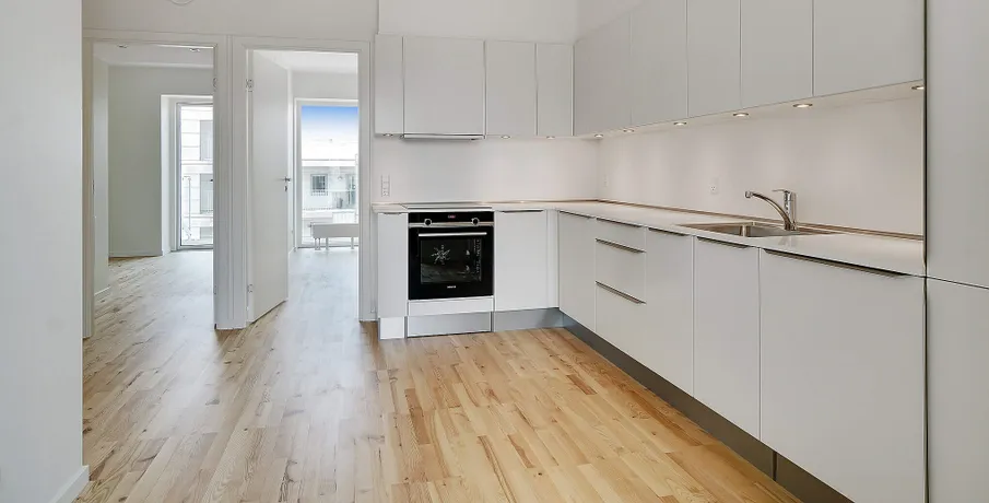 Bo lækkert tæt på fjorden og med sol på altanen De nye lejeboliger er præget af kvalitet i design og materialer og omtanke i alle detaljer Nørresundby Havnefront ligger tæt på det rekreative område Lindholm Strandpark, hvor du kan bade fra badebroen, spille beach-volley eller løbe en tur i naturen ad stien til Lindholm Fjordpark. Er det mere byens puls, der trækker, kan du cykle eller gå ad Kulturbroen – eller Kærlighedsbroen, som den også bliver kaldt – der på få minutter fører dig til Aalborg og bylivets tilbud. Boligerne er lyse, moderne og velindrettede. Lejlighederne har massive trægulve og hvide HTH køkkener med moderne stilfulde greb. Lejlighederne har desuden flere indbyggede skabe. Alle lejligheder er fuldt udstyrede med hårde hvidevarer i køkken og bad. Der er fokus på at minimere din elregning, både af hensyn til din pengepung og miljøet. F.eks. har både opvaskemaskinen og vaskemaskinen energimærket A+++, mens køle-/fryseskabet og tørretumbleren kommer lige efter med A++. Lejlighederne har alle enten en stor altan eller en terrasse. Lejlighederne varierer i størrelse, og en del af dem er også velegnede som delelejligheder. Her kan findes en velegnet bolig til unge og ældre, singler og par, børnefamilier og studiekammerater, der gerne vil dele hverdagen og huslejen. I Nørresundby Havnefront bor du i et røgfrit miljø: Det er ikke tilladt at ryge i lejligheder og opgange, eller på altaner og terrasser. Alle bygningerne har det grønne energimærke A2015, der er din sikkerhed for, at de lever op til de gældende energi- og tæthedskrav. OBS: Billederne kan være af en prøvebolig, og ikke den specifikke bolig.