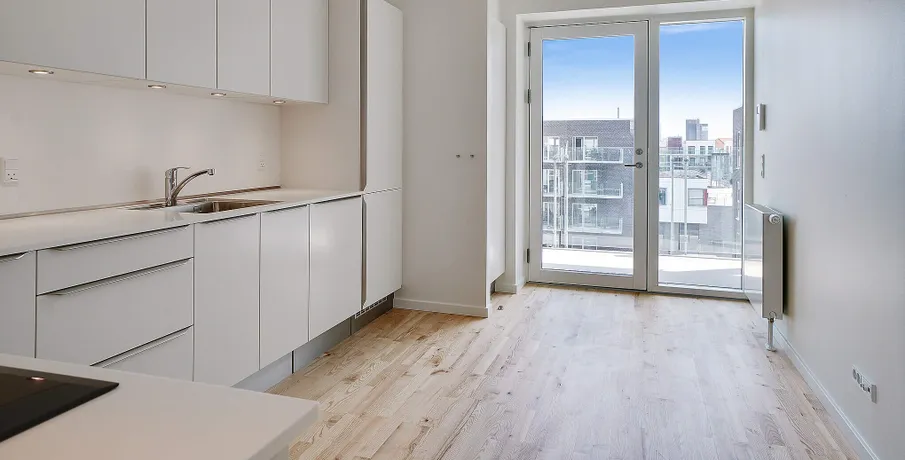 Bo lækkert tæt på fjorden og med sol på altanen De nye lejeboliger er præget af kvalitet i design og materialer og omtanke i alle detaljer Nørresundby Havnefront ligger tæt på det rekreative område Lindholm Strandpark, hvor du kan bade fra badebroen, spille beach-volley eller løbe en tur i naturen ad stien til Lindholm Fjordpark. Er det mere byens puls, der trækker, kan du cykle eller gå ad Kulturbroen – eller Kærlighedsbroen, som den også bliver kaldt – der på få minutter fører dig til Aalborg og bylivets tilbud. Boligerne er lyse, moderne og velindrettede. Lejlighederne har massive trægulve og hvide HTH køkkener med moderne stilfulde greb. Lejlighederne har desuden flere indbyggede skabe. Alle lejligheder er fuldt udstyrede med hårde hvidevarer i køkken og bad. Der er fokus på at minimere din elregning, både af hensyn til din pengepung og miljøet. F.eks. har både opvaskemaskinen og vaskemaskinen energimærket A+++, mens køle-/fryseskabet og tørretumbleren kommer lige efter med A++. Lejlighederne har alle enten en stor altan eller en terrasse. Lejlighederne varierer i størrelse, og en del af dem er også velegnede som delelejligheder. Her kan findes en velegnet bolig til unge og ældre, singler og par, børnefamilier og studiekammerater, der gerne vil dele hverdagen og huslejen. I Nørresundby Havnefront bor du i et røgfrit miljø: Det er ikke tilladt at ryge i lejligheder og opgange, eller på altaner og terrasser. Alle bygningerne har det grønne energimærke A2015, der er din sikkerhed for, at de lever op til de gældende energi- og tæthedskrav. OBS: Billederne kan være af en prøvebolig, og ikke den specifikke bolig.