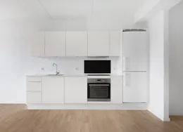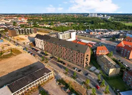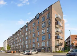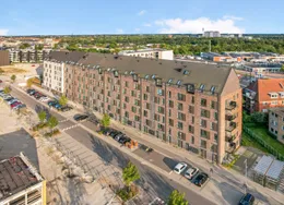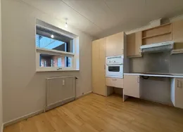 . Nyistandsat lejlighed med højt til loftet – midt i Odense. En lille lejlighed med store kvaliteter – tæt på både byliv og natur.. I denne nyistandsatte lejlighed får du lyse rammer med højt til loftet, store vinduer og en fornuftig planløsning. Her får du blandt andet nyt Svane-køkken, alle hårde hvidevarer og et godt, rummeligt badeværelse. Lejligheden er en del af Albanigade 23 – en historisk ejendom i hjertet af Odense C, opført i 1862 og nænsomt omdannet til moderne boliger med nutidig komfort.. Albanigade 23 har en af Odenses mest attraktive beliggenheder: Her har du by-og kulturliv lige om hjørnet – bare to letbanestop fra banegården – og du er samtidig nabo til nogle af byens dejligste rekreative åndehuller.. Ejendommen tilbyder både aflåst cykelparkering og mulighed for P-plads..