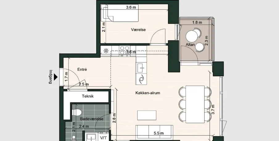 2 værelses lejlighed på 80 m2