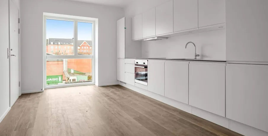 Velkommen til denne lyse og rummelige 3-værelses lejlighed på 90 m² i det attraktive Pakhuskajen-område. Her får du et åbent køkken-alrum med flotte kvalitetsmaterialer og store vinduespartier, der sikrer et fantastisk lysindfald og udsigt over havnemiljøet. Fra stuen er der direkte adgang til en dejlig altan, hvor du kan nyde roen ved vandet.Lejligheden rummer to gode værelser, et stilrent badeværelse med bruseniche og plads til vaskefaciliteter. Beliggenheden giver dig kort afstand til Storms Pakhus, Havnebadet og Odense centrum – tæt på alt, hvad du behøver.En moderne bolig med sjæl og en beliggenhed, der skaber den perfekte ramme om hverdagen.