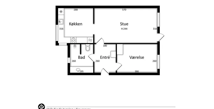 2 værelses lejlighed på 61 m2