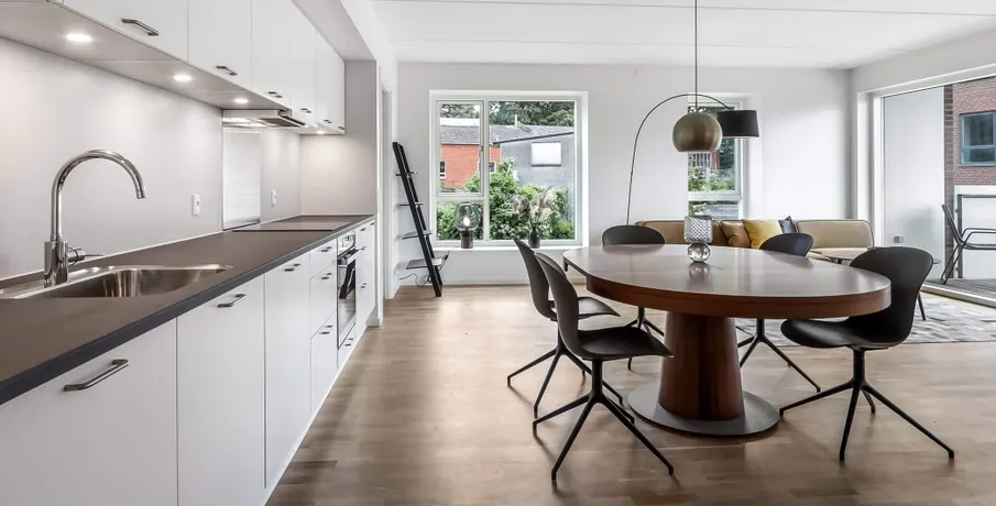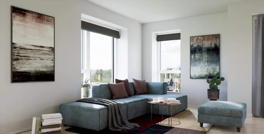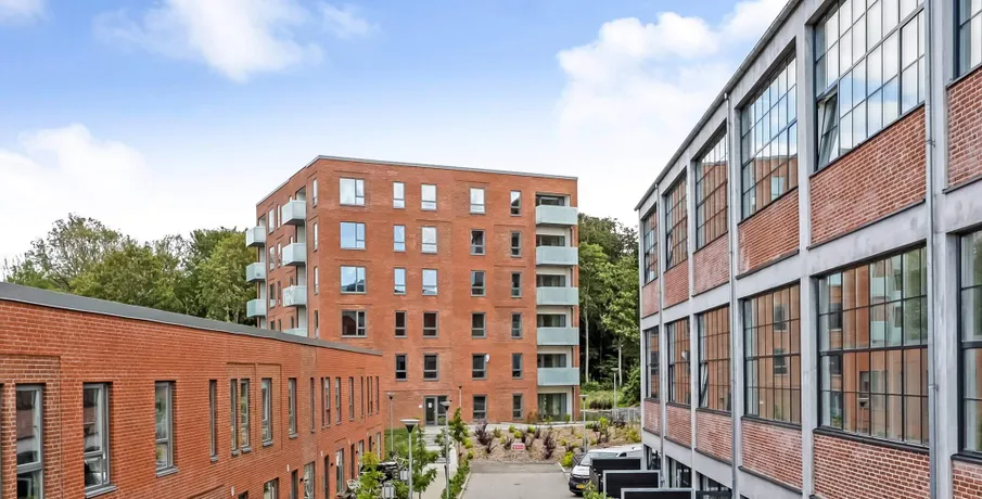 Tekstilparken er for kvalitetsbevidste lejere, som ønsker en bolig med stilren indretning, energivenlige løsninger og private uderum, der er solrige og vedligeholdelsesfrie. Det er også for jer, som vil bo helt tæt på naturen, men som samtidig ønsker kort vej til det pulserende byliv i City.. Lejligheden har en veludnyttet planløsning, og I kan glæde jer over behagelig gulvvarme i samtlige rum. Der er en lys og let indretningsstil med stilrene kvalitetsmaterialer, og de store rum lader sig nemt indrette.. En af de primære prioriteringer har været et stort køkken/alrum, der ligger i ét med stuens areal. Køkkenet har stilrene moduler fra HTH og et komplet udvalg af kvalitetshvidevarer. Der er gulv til loft-vinduer, som lader lyset strømme ind, og I får et fantastisk samlingssted med plads til madlavning og fælles stunder om spisebordet eller i sofagruppen. Som prikken over i’et er der direkte udgang til altanen, der har god plads til sommerens måltider.. Der er grønne gårdrum mellem karréerne og et hyggeligt naboskab på tværs af generationer. For visse lejere er det helt afgørende, at man i Tekstilparken må have husdyr i sin bolig, og med skoven i baghaven er der rig mulighed for skønne gåture med hunden.. Der er parkeringsplads få meter fra hoveddøren, og for jer med elbil er der naturligvis også mulighed for opladning.. Med bare tre kilometer til hjertet af Odense og skovarealer i baghaven kan Tekstilparken tilbyde en naturskøn og idyllisk adresse, som ingen andre i Odense kan hamle op med. For børnefamilien er det en ekstrastor fordel med kort vej til skoler og daginstitutioner, ligesom beboere i alle aldre får glæde af Tekstilparkens eget supermarked; den store, nybyggede Rema1000.. Tekstilparken er den perfekte kombination af byliv, natur og det gode naboskab. Få syn for sagen og book en fremvisning med det samme. Vi glæder os til at byde jer velkommen.