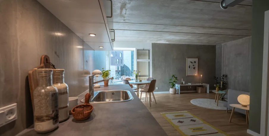 Viften er skabt til dig, der ønsker mere end bare en bolig. Her får du et hjem midt i Odense, hvor fællesskab, tryghed og nærvær er en naturlig del af hverdagen.. De lyse og funktionelle lejligheder på 2-3 værelser byder på moderne materialer og adgang til grønne, fælles opholdsrum, som indbyder til samvær med naboerne og venner.. Viften tilbyder:. Velindrettede boliger med plads til både fællesskab og privatliv. Store fællesområder, der skaber grobund for et levende naboskab. Elevator i alle opgange og mulighed for p-plads m. beboerlicens.. En beliggenhed tæt på byliv, indkøb og offentlig transport. Viften byder på lyse lejligheder med adgang til store fælles køkkenområder og hyggelige spisearealer, hvor du nemt kan møde dine naboer over madlavning og fælles måltider.. Der medfølger ikke hårde hvidevarer i boligerne, hvilket giver dig friheden til selv at vælge de løsninger, der passer bedst til dine behov og din stil.. Her kan du engagere dig i fællesskabet, deltage i aktiviteter – eller bare nyde roen i dine egne rammer.. Huslejen starter fra 6.800 kr. pr. måned. eksklusive forbrug.. Bliv en del af Viften – et nyt, stærkt fællesskab midt i byen!