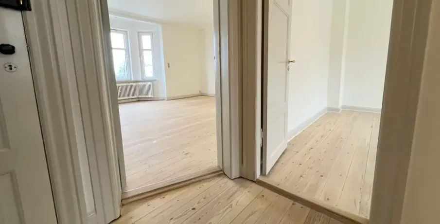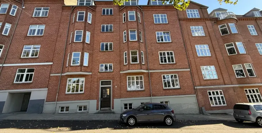 Beliggenhed. Centralt beliggende og renoveret ejendom. Ejendommen er beliggende tæt på banegården og med byens centrum i gåafstand med et stort udvalg af indkøbsmuligheder. Der er fælles gårdhave til ejendommen, der støder direkte op til offentligt parkanlæg. Børneinstitutioner og skoler i gåafstand.. Faciliteter. Vaskefaciliteter henvises.. Øvrigt. Altaner på de fleste lejemål. Afhøvlede massive trægulve og stuklofter..
