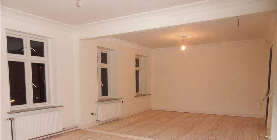 Flot lejlighed med nyt køkken og badeværelse. Afhøvlede gulve og stuklofter. Alt i hårdehvide varer.