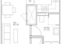 2 værelses lejlighed på 61 m2