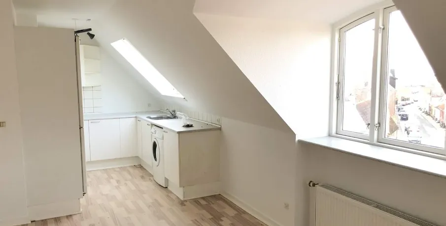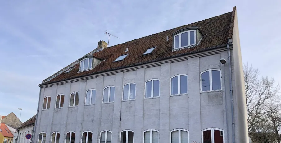 Charmerende og rummelig 2 værl. lejlighed på 62 kvm som indeholder: Entre, dejlig stue, soveværelse, køkken og badeværelse. Balkon fra soveværelset med udsigt over byen. Fra stuen udsigt til Langelandsbroen.