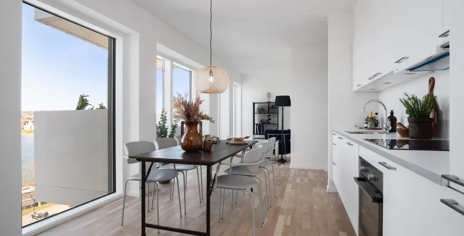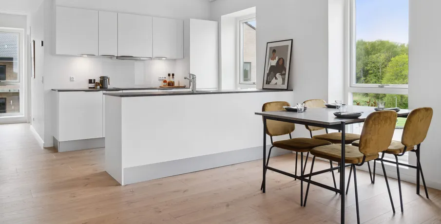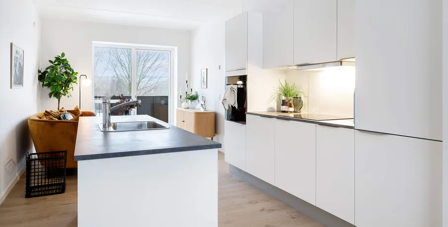. Attraktiv beliggenhed Ørnsøhave ligger placeret i det populære boligområde Lysbro, kun tre kilometer fra Silkeborg midtby. Med en lejlighed i Ørnsøhave har du kun 500 meter til Ørnsø og skoven. Lysbro ligger i forlængelse af Funder og Hvinningdal med gode skoler, daginstitutioner, indkøbsmuligheder og fritidsaktiviteter.. Nemt for pendlere Ørnsøhave ligger blot tre kilometer fra Silkeborg Station, som let nås på cykel. Med den korte afstand til stationen, kan du nemt tage toget mod studiet eller jobbet. Har du bil, får du med en bolig i Ørnsøhave let adgang til motorvejen, og kan være i enten Herning på blot 25 minutter eller Aarhus på 35 minutter. Energivenligt byggeri Ørnsøhave er opført som energivenligt byggeri og forventes at opnå bæredygtighedscertificeringen DGNB. Det betyder, at der udvises både social-, økonomisk- og miljømæssigt ansvar igennem hele byggeprocessen. OBS: Billeder, visualiseringer og plantegninger er vejledende.