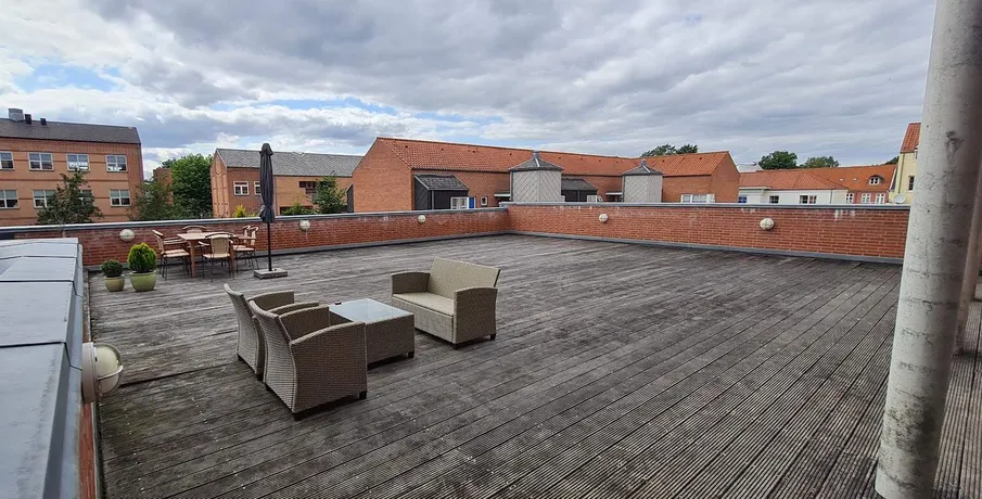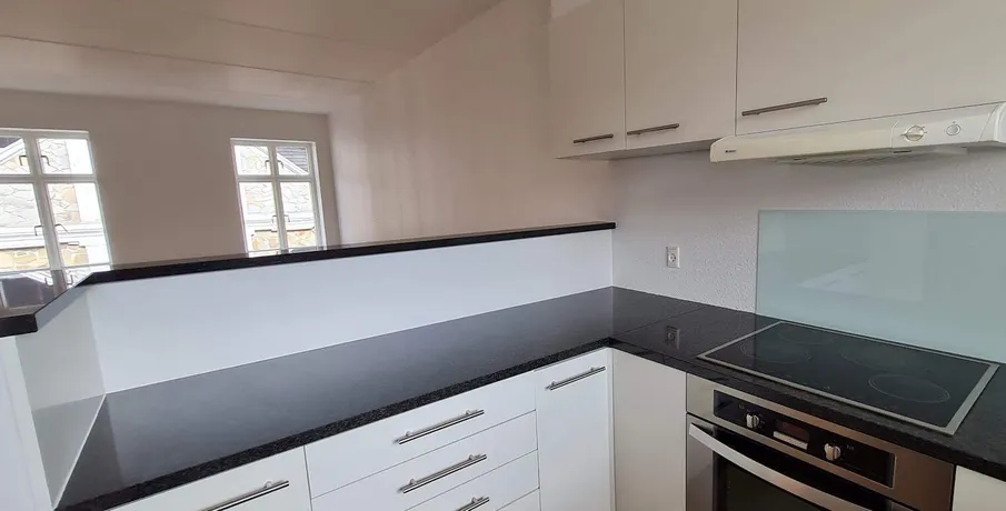 . Flot lejlighed beliggende i Skolegade.. Lejligheden består af entre, lækkert badeværelse med sort granit med gulvvarme, åbent køkken/stue med granitbordplade, samt soveværelse med faste skabe.. Ejendommen har elevator, stor fælles terrasse, med fin mulighed for at lave dit eget private område i forbindelse med lejligheden - samt indlagt kabel tv/bredbånd. Der er mulighed for at leje p-plads i gården.. Det er ikke tilladt at holde husdyr.. Kontakt os for ønske om en fremvisning på telefon eller send os en mail.. Vi viser frem alle ugens syv dage..