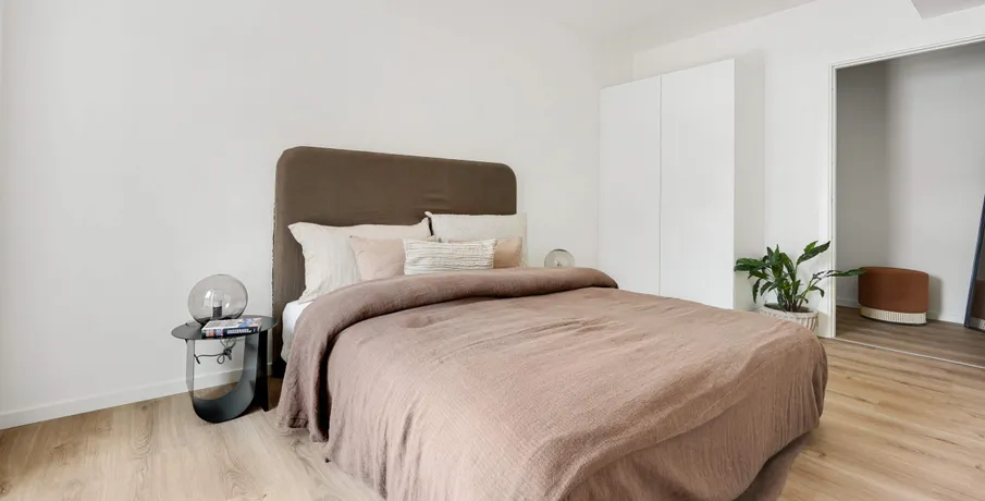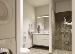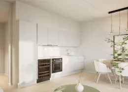 2-værelses lejlighed i Skovlunde Bymidte. Velkommen til Skovlunde Bymidte, et moderne boligbyggeri med alt lige uden for døren.. De 2-værelses lejligheder er lyst indrettet med moderne køkken, hårde hvidevarer og vaskemaskine – flere med tørretumbler. Planløsningen er gennemtænkt og skaber en funktionel og indbydende bolig, der passer til både singler og par.. Ejendommen Ejendommen er moderne og opført i gode materialer. Der er elevator, cykelparkering og adgang til grønne opholdsarealer. I stueetagen finder du butikker som Normal, Matas, Meny, Netto, Lagkagehuset og frisør – alt samlet ét sted.. Området Her bor du centralt i Skovlunde med kort afstand til Skovlunde Station, hvor S-toget giver hurtig forbindelse til København. Området byder på Skovlunde Bypark, fitnesscenter, svømmehal, skole og gode stisystemer.. Et lyst og funktionelt hjem i et levende bymiljø.. Billederne i denne annonce kan være fra lignende enheder og er kun til illustration. De repræsenterer stilen og kvaliteten af de tilgængelige enheder og kan variere i opbygning og detaljer.. Møblerne vist på billederne medfølger ikke. De skal give et indtryk af, hvordan rummet kan indrettes, men er ikke inkluderet i lejemålet..
