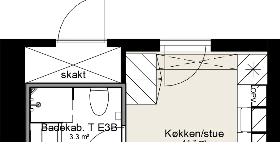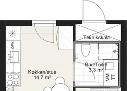 2 værelses på 45 m2