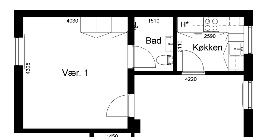 2 værelses lejlighed på 85 m2