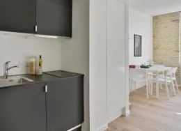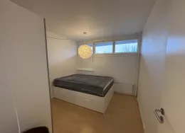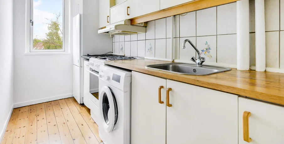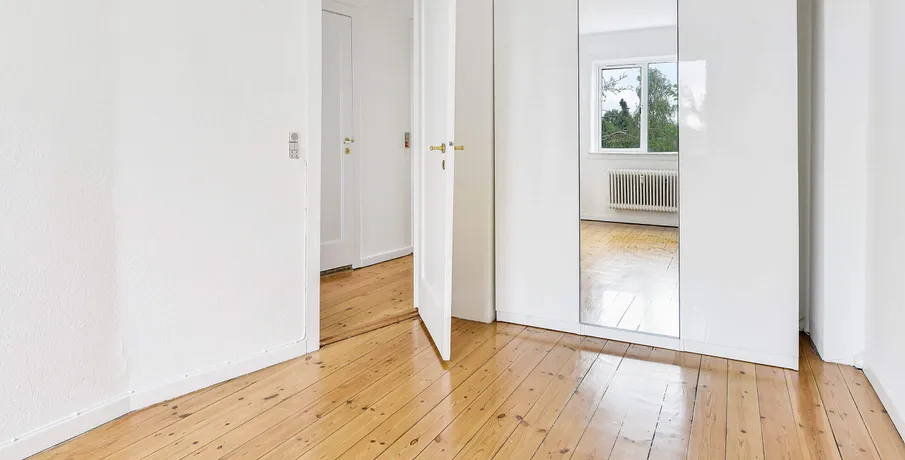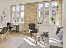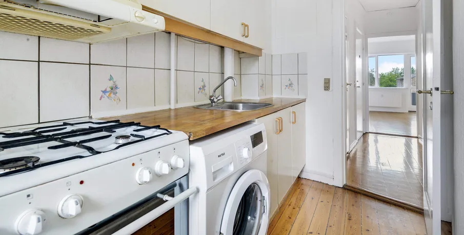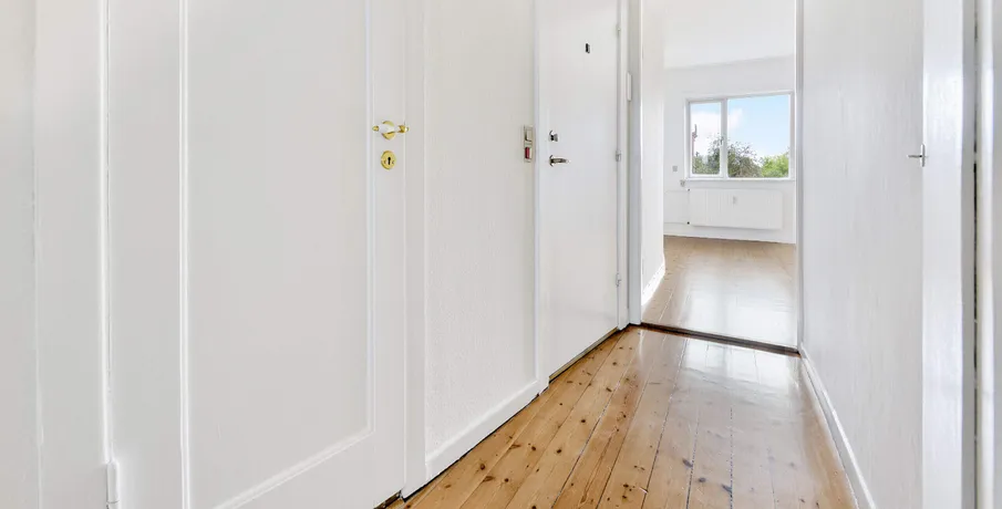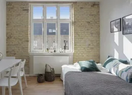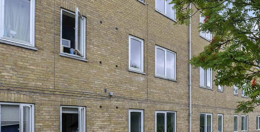 Kan også lejes delvist møbleret for et tillæg på kr. 500,00 pr. måned.. Denne bolig indeholder – en lejlighed nymalet i flotte moderne farver. Boligen ligger HELT ugenert,. få minutter fra E-S tog, busser, motorvej.. Folehaven 126, 1. sal – 2 værelses, velindrettet lejlighed. beliggende i gulstens byggeri opført 1940.. Boligen indeholder:. Fordelings entré.. Lys og venlig opholdsstue med spisestue afdeling og udgang til altan. Lyst soveværelse med fri udsigt til grøn, fredeligt gårdhave, som. er til fælles benyttelse for beboere i ejendommen.. Pænt køkken med nyere elementer, gaskomfur , emhætte, køle/frys og. Opvaskemaskine.. Flisebadeværelse med nyere vaskemaskine.. Overalt nylakerede bræddegulve.. Der er nyere, lyd- og velisolerede thermo-vinduer.. Central-/fjernvarme.. Hoveddøren til opgangen åbnes med systemnøgle og der er dørtelefon.. Til lejligheden hører kælderrum. Der er indlagt hybridnet/TDC – lejer tilmelder/afregner selv hertil.. Lejligheden er beliggende centralt for offentlig transport,. indkøbsmuligheder og institutioner.. Boligen kan lejes møbleret – se møbler og inventar på dette lejemål –.