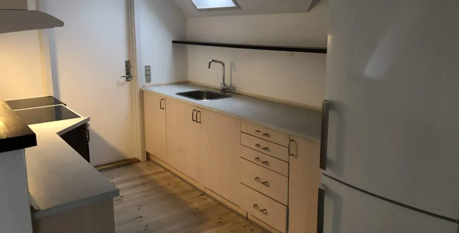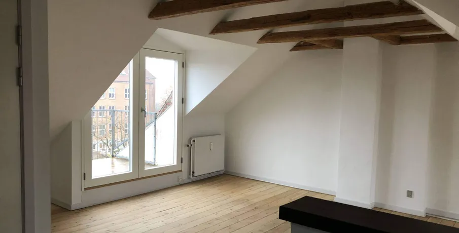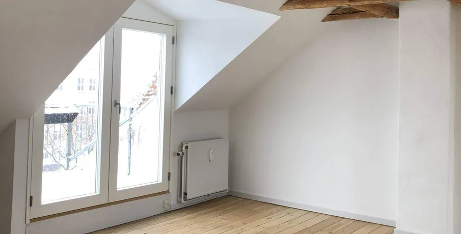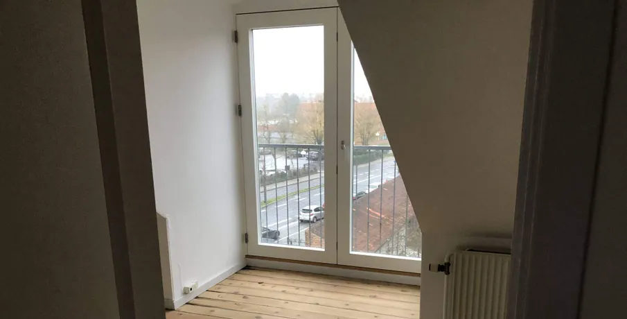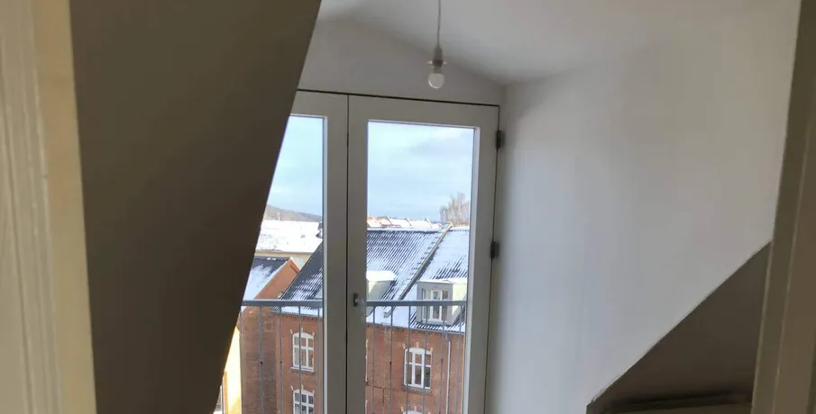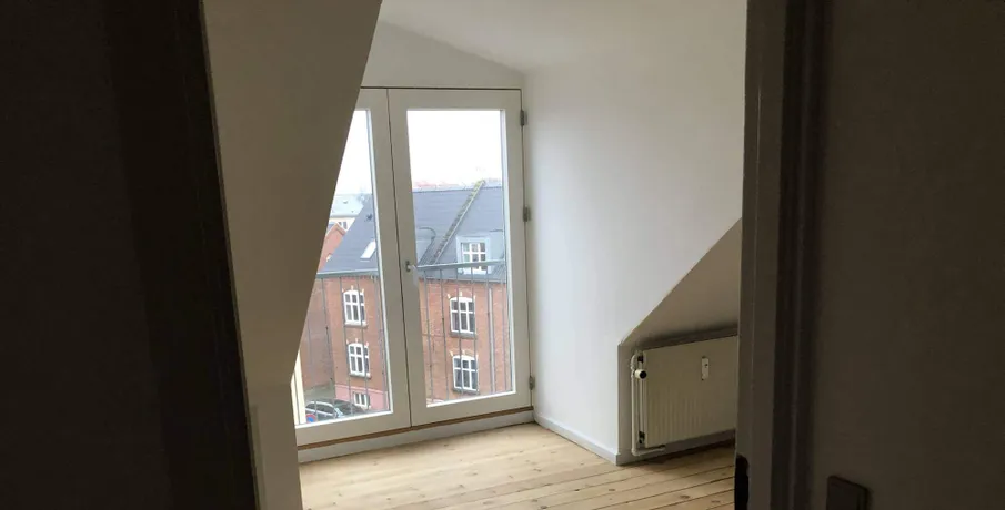 3-værelses lejlighed på 91m2 med flot udsigt fra den lækre altan, udlejes.. Lejligheden er malet i lyse indbydende farver, der er synlige bjælker som virkelig sætter et hyggeligt præg over lejligheden.. Store vinduer i begge sider af stuen gør, at skråvæggene får et tvist af designer lejlighed. Lyse trægulve er også med til at gøre lejligheden frisk og indbydende.. I køkkenet er der installeret komfur, emhætte samt køle/fryseskab.. Lejligheden har 2 værelser, samt en stor, lys og dejlig stue. Fra stuen er der udgang til en skøn altan.. Lejligheden er desuden velegnet som delelejlighed og den er beliggende i en rolig ejendom, som fremstår flot og velholdt og med stabile lejere.. Adgang til fællesvaskeri,.. El afregnes direkte med værket.. Husdyr er IKKE tilladt.. Altan Cykelkælder/-skur Energimærket Fælles gårdanlæg Fælles vaskeri Husdyr ikke tilladt Kælderrum Mulighed for parkering