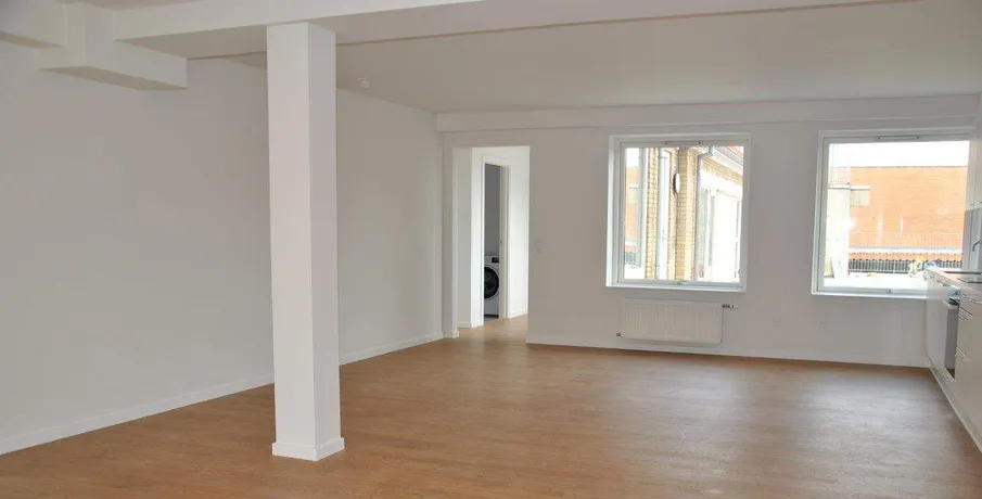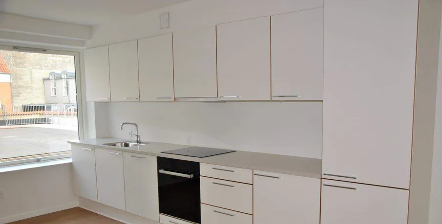 Stor, nyistandsat 2-værelses lejlighed beliggende i hjertet af Viborg, lige over Kop og Kande. Lejligheden indeholder en indbydende entré med direkte adgang til en stor fælles tagterrasse, hvor der også findes et privat område til lejemålet. Det åbne køkken-alrum er udstyret med et nyt køkken fra Tvis, inklusiv køle/fryseskab, ovn, kogeplader, emhætte og opvaskemaskine. Fra stuen er der ligeledes udgang til den fælles tagterrasse. Soveværelset er rummeligt, og badeværelset har moderne klinker og en bruseniche. Lejligheden har trægulve i entré, stue, køkken og soveværelse, og der medfølger fælles cykelrum og depotrum. Husdyr: Nej Delevenlig: Nej Møbleret: Nej Terrasse: Ja