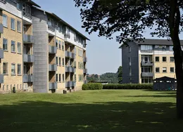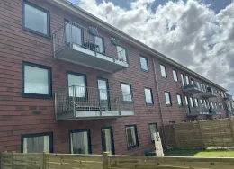 Møllegården er en lille og rolig afdeling midt i Viborg, kun få hundrede meter fra gågaden og byens liv. Afdelingen består af 16 lejligheder med 2 eller 3 værelser, fordelt på tre etager. Mellem bygningerne ligger et hyggeligt gårdmiljø med bænke og cykelskur – et sted, hvor man kan tage en pause eller mødes med naboen. Byggeriet er opført i 2012 og fremstår moderne og velholdt – med en placering, der gør det let at få hverdagen til at hænge sammen, hvad enten man pendler, handler ind eller bare vil nyde bylivet.
