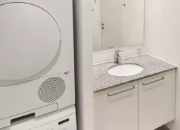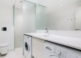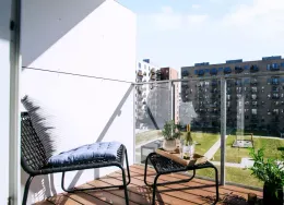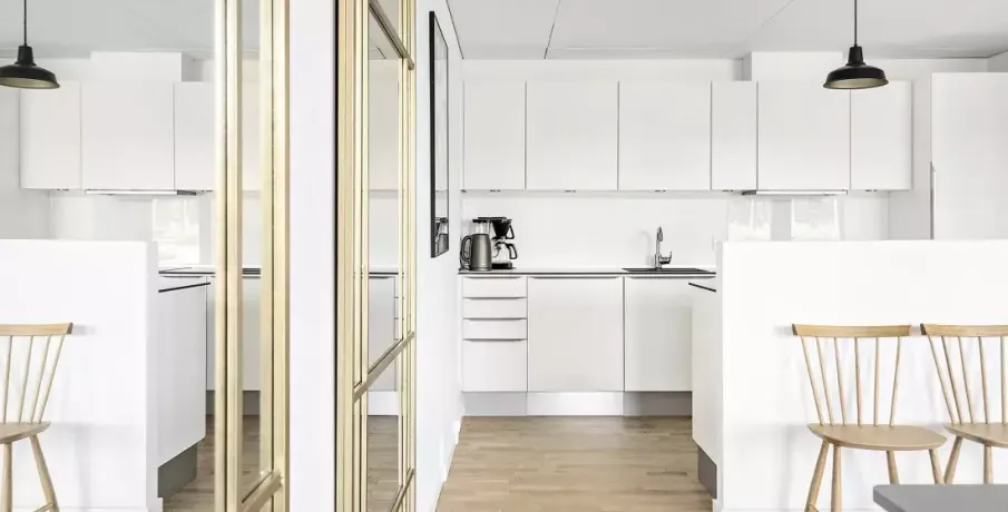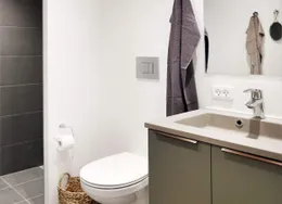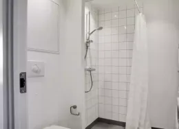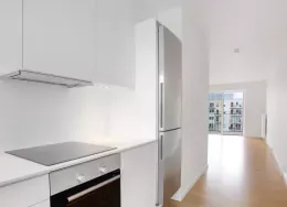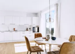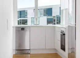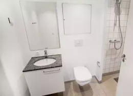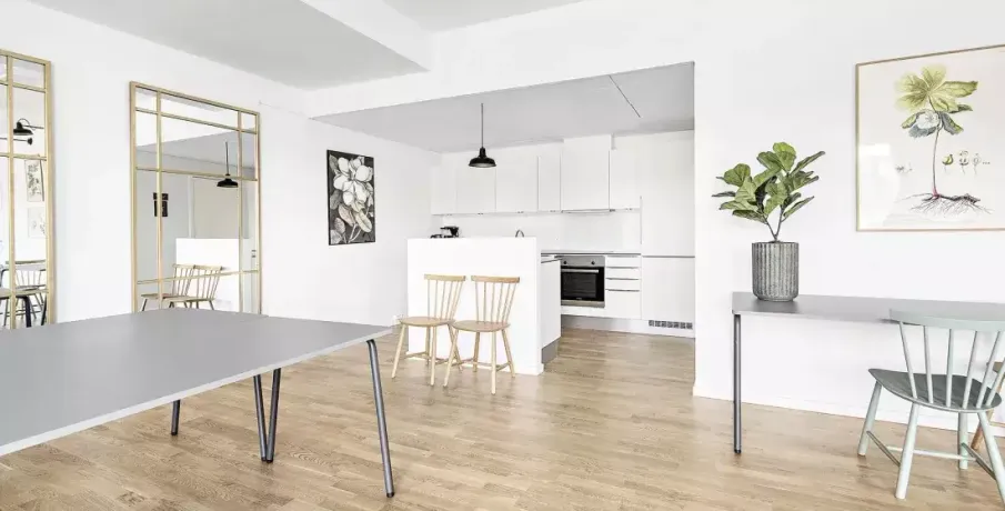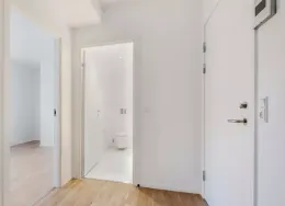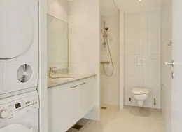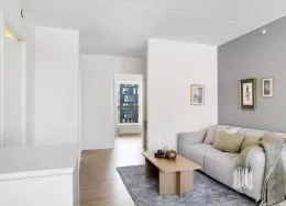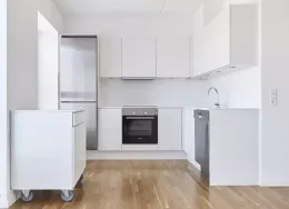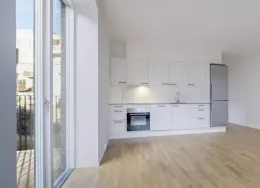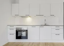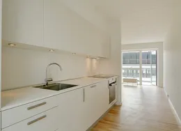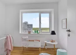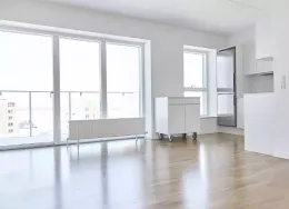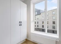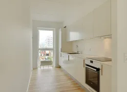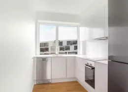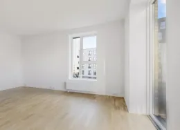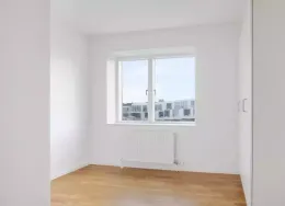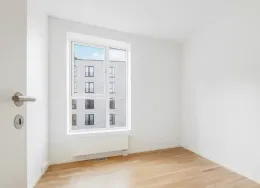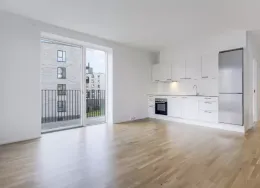 Lejligheden fremstår lys og rummelig og er opført i klassiske og tidssvarende materialer. Stue og køkken ligger i forlængelse af hinanden og skaber et stort åbent rum der giver maksimalt udbytte af det fantastiske lysindfald. Det moderne og praktiske køkken er fra Invita og byder blandt andet på ’svævende’ bordplade med højtrykskomposit, LED-spots og integrerede hvidevarer – alle fra Siemens. Fra gangen har du adgang til det indbydende badeværelse med gulvvarme, formstøbt og integreret marmorvask, væghængt toilet samt vaskemaskine og tørretumbler. Det er muligt at ansøge om husdyrtilladelse i alle vores lejemål. OBS: ønskes der mål af lejligheden skal du selv huske opmålings udstyr til fremvisning, da der ikke er mål på plantegningen.