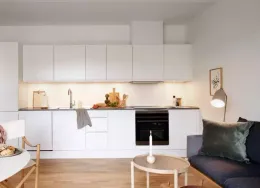 2 værelses lejlighed med en rummelig stue, hvorfra du har udgang til vestvendt altan. I forbindelse med den rummelige stue, finder du et moderne hvidt grebsløs Invita køkken med grå CoreStone bordplader og god skabsplads samt hårde hvidevarer fra Gram med bl.a. opvaskemaskine. Soveværelset er udstyret med faste garderobeskabe. Rummeligt og indbydende badeværelse med flotte mørke fliser på gulv og i brusenichen samt gulvvarme. Formstøbt vask, væghængt toilet samt vaskesøjle. Flotte gulve i eg lamelparket. Gode lysindfald i hele lejligheden gennem de store flotte vinduespartier. Let adgang til depotrum som findes i lejligheden. Lejligheden opvarmes med gulvvarme. Det er muligt at ansøge om ét husdyr i alle vores lejemål. Boligen er beliggende i et attraktivt nabolag i Høje Taastrup C, som har klare ambitioner, om at være et levende og attraktivt nabolag – med fokus på gennemtænkte løsninger, der sikrer rammerne om en tryg hverdag. Når du bor i Rubinhaven, er der kort afstand til Tåstrup Station, hvorfra tog til København tager cirka 25 minutter. Endvidere kun 5 minutters gang til de gode indkøbsmuligheder i City 2.