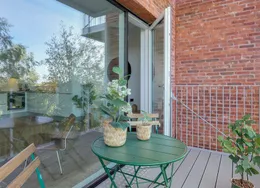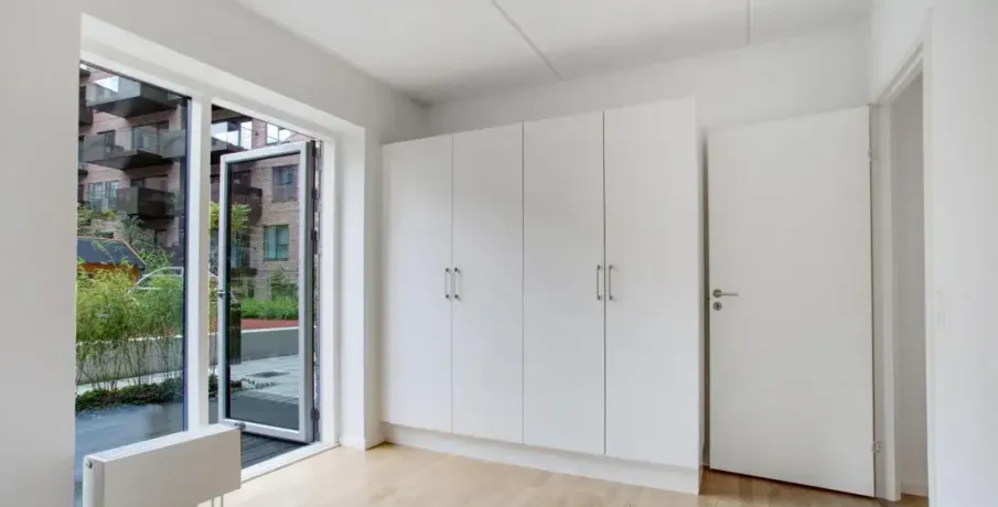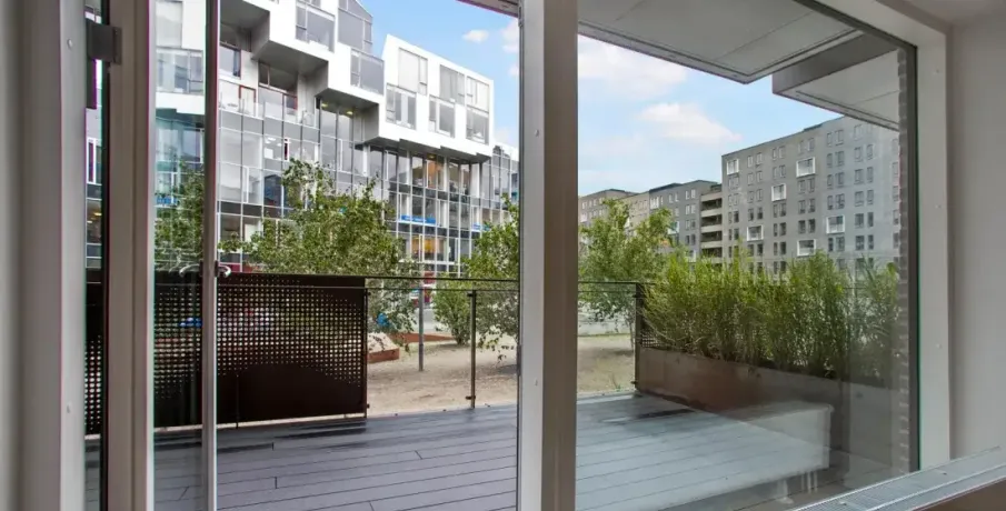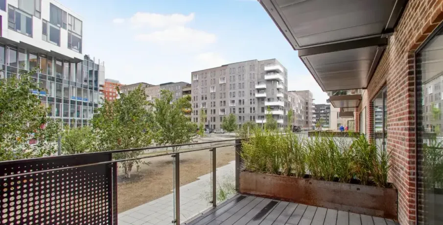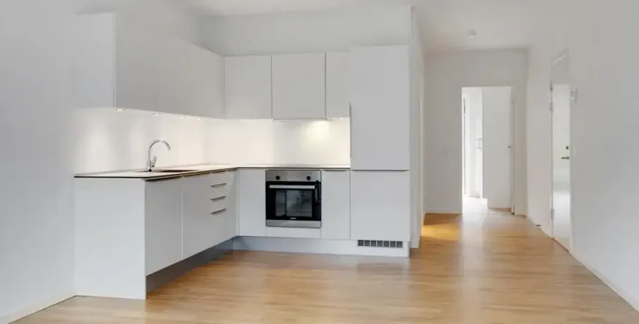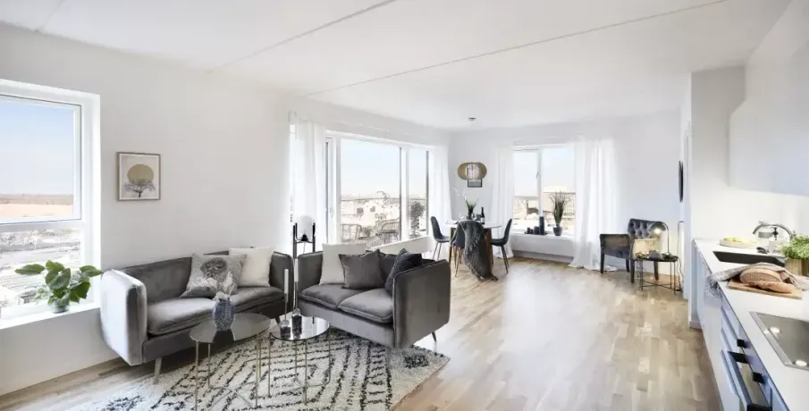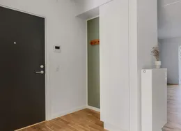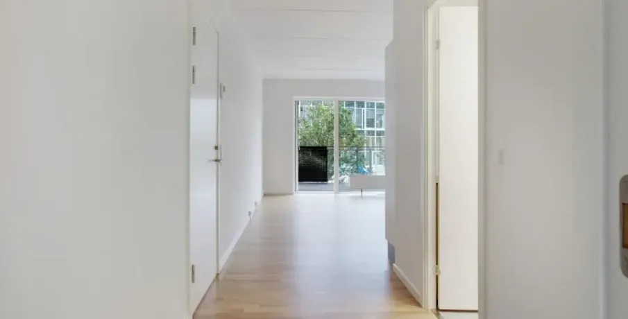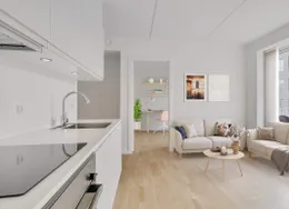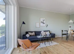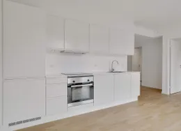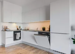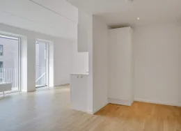 Lejligheden fremstår lys og rummelig og er opført i klassiske og tidssvarende materialer. Stue og køkken ligger i forlængelse af hinanden og skaber et stort åbent rum der giver maksimalt udbytte af det fantastiske lysindfald. Det moderne og praktiske køkken er fra Invita og byder blandt andet på ’svævende’ bordplade med højtrykskomposit, LED-spots og integrerede hvidevarer – alle fra Siemens. Fra gangen har du adgang til det indbydende badeværelse med gulvvarme, formstøbt og integreret marmorvask, væghængt toilet samt vaskemaskine og tørretumbler. Det er muligt at ansøge om husdyrtilladelse i alle vores lejemål. OBS: ønskes der mål af lejligheden skal du selv huske opmålings udstyr til fremvisning, da der ikke er mål på plantegningen.