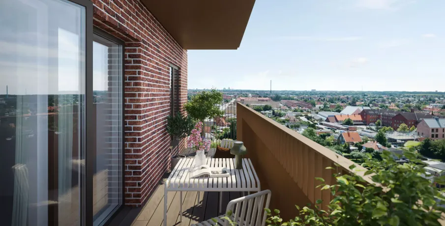 **Velkommen til Bysvinget . ** . I Grønnebros lejeboliger lever du det gode liv med naturen som nabo og storbyens pulserende liv lige rundt om hjørnet. Med varme nuancer, gennemtænkte planløsninger og lækre materialer byder Bysvinget på 2-4-værelses lejligheder fordelt på 53-102 m2, hvor du straks kan føle dig hjemme. Uanset om du er single, et seniorpar, en stor, en lille eller en sammenbragt familie – eller en ”harmonikafamilie”, der vokser og skrumper fra uge til uge – så er der plads til dig i Bysvinget.. Lejeboligerne er lyse, åbne og indbydende, og med gulvvarme i alle rum er der skruet op for komforten og slukket for kolde tæer. Det multifunktionelle køkken-alrum er hjemmets hjerte, hvor du har plads til alt fra hverdagssnak og lektielæsning ved bordet til hyggelige middage med venner, morgener med friskbagte boller og kulinariske eventyr.. Når aftenen falder på, kan du lade roen sænke sig, mens du enten nyder udsigten fra din private altan eller lader den blide brise kærtegne dig på terrassen. Her er trygt og rart. At bo. At være. At skabe minder for livet.
