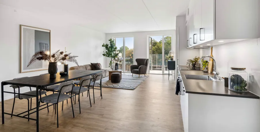 **Velkommen til **. I Lunden i Kirkebjerg Søpark finder du lejelejligheder på 2-4 værelser fordelt på 60-108 kvadratmeter. Fleksible og moderne planløsninger sørger for, at du får mest muligt ud af dine kvadratmeter, så hvad enten du er single, familie med børn eller senior, er der plads til, at alle kan trives. . Hjertet i boligen er det store køkken-alrum med plads til hygge og samvær med venner og familie, og fra opholdsstuen er der adgang til egen privat altan, terrasse eller have med udkig mod enten syd eller vest. . I Lundens gårdrum finder du lysåbne træer og et stiforløb af let hævede gangbroer. Høje enggræsser, mindre buske og træer frembringer hyggelige læfyldte opholdskroge, hvor der er plads til både samvær med familie og naboer, og rum til eftertænksomhed på egen hånd. . Når du bor i Lunden, bor du tæt på Kirkebjerg Søparks to parkeringshuse, så du nemt kan få dagens indkøb og bagage fra bil til bolig. Og i parkeringshuset har du også mulighed for at oplade din elbil. Bruger du pedalkraft i stedet for? Der er selvfølgelig også masser af cykelparkering tæt på din bolig.. Bemærk venligst at der tages forbehold for, at plantegningen er vejledende og ligeledes billederne af boligen, som ikke nødvendigvis svarer til det pågældende lejemål._