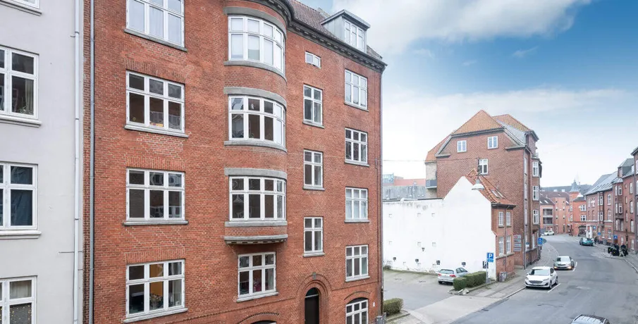2-værelses lejlighed udlejes i Holbergsgade Lejligheden er beliggende i gaden Holbergsgade i Aalborg Centrum. Fra lejlighedens beliggenhed befinder du dig tæt på gågaderne, gode indkøbsmuligheder hvor bl.a. Netto er beliggende overfor ejendommen, Aalborg havnefront, Salling, restauranter, caféer og alt det midtbyen har at tilbyde. Lejligheden indeholder stor entré med plads til sko og overtøj. Herfra er der adgang til lejlighedens store stue som har et flot loft med stuk. Soveværelse med opsat bruseniche. Hvidt køkken med komfur, køle/fryseskab, emhætte samt overskabe. Mindre toilet med fliser på gulve. Der er i ejendommen adgang til aflåst gård, hvor der må sættes egne havnemøbler. Endvidere vaskeri i gården og cykelparkering. Ligeledes tørresnor. Der er dørtelefon og aflåst hoveddør døgnet rundt. Lejligheden overtages som beset og er tidsbegrænset til d. 31.10.2027. Kontakt os gerne for spørgsmål eller ved ønske om en fremvisning.