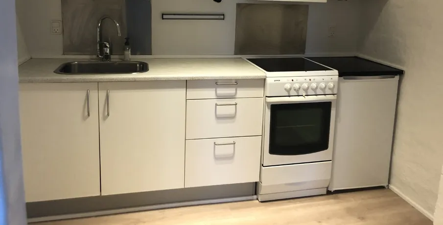 Lejemålet er i alt på ca. 29 kvm og indeholder: nyere HTH-køkken, værelse/stue samt eget nyere pænt badeværelse som er beliggende separat på fællesgangen. Fælles have som passes af lejerne i fællesskab. Gode parkeringsforhold.
