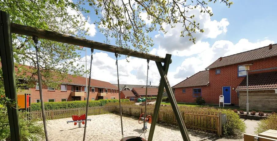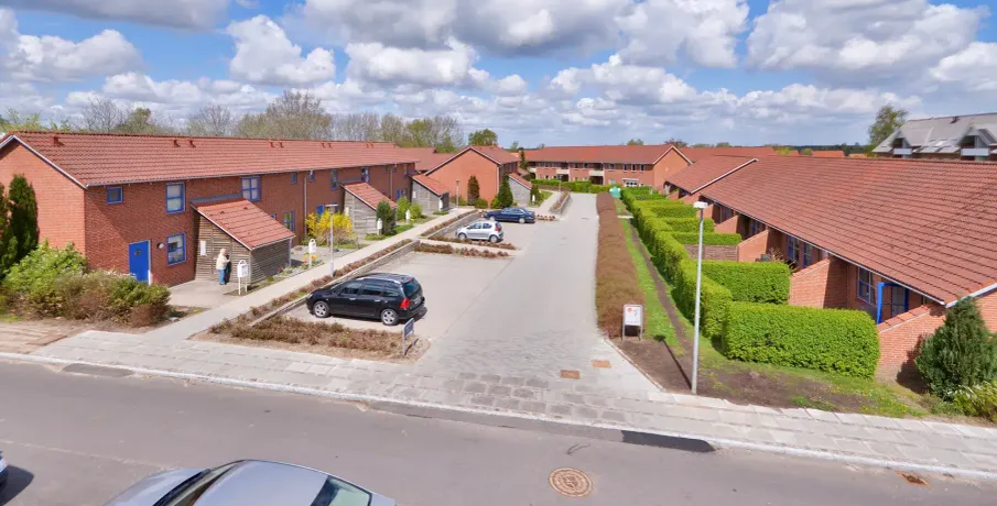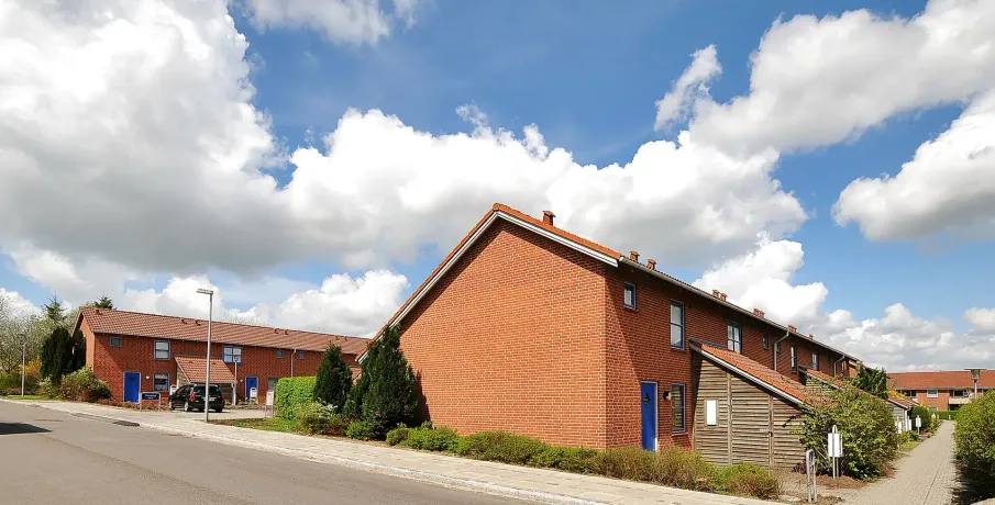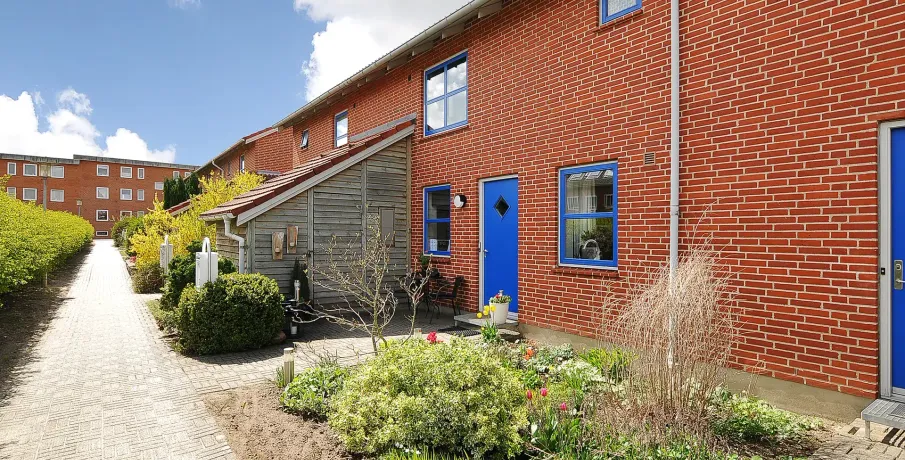 Bebyggelsen består af rækkehuse i 1 og 1½ plan med forskudte etager. Boligerne er opført i 1990 og i 1993. Boligen har udgang til mindre have. Boligen er indrettet med forskudte indvendige etager og med indvendige trapper. Dette giver boligerne en spændende indretning. Bebyggelsen ligger sammen med en del andre af Vejen Boligforenings boliger, hvor der findes grønne områder og legepladser.